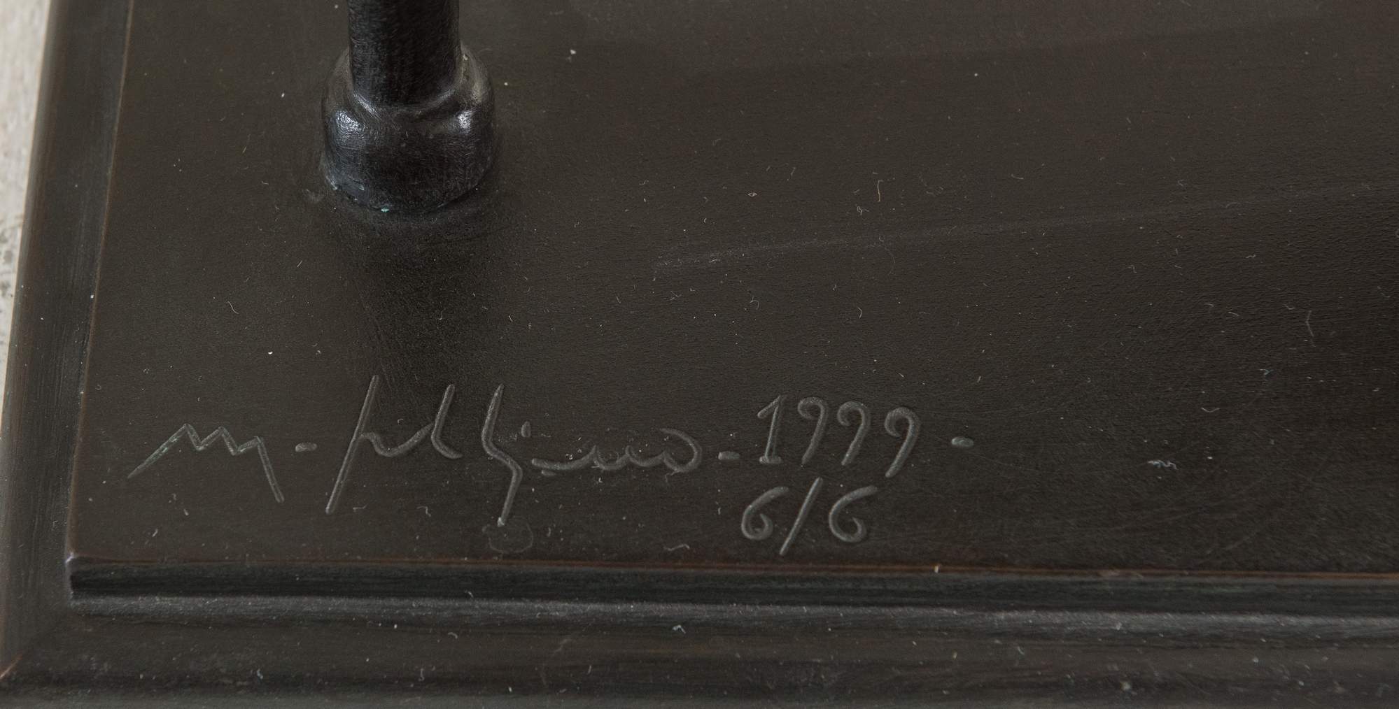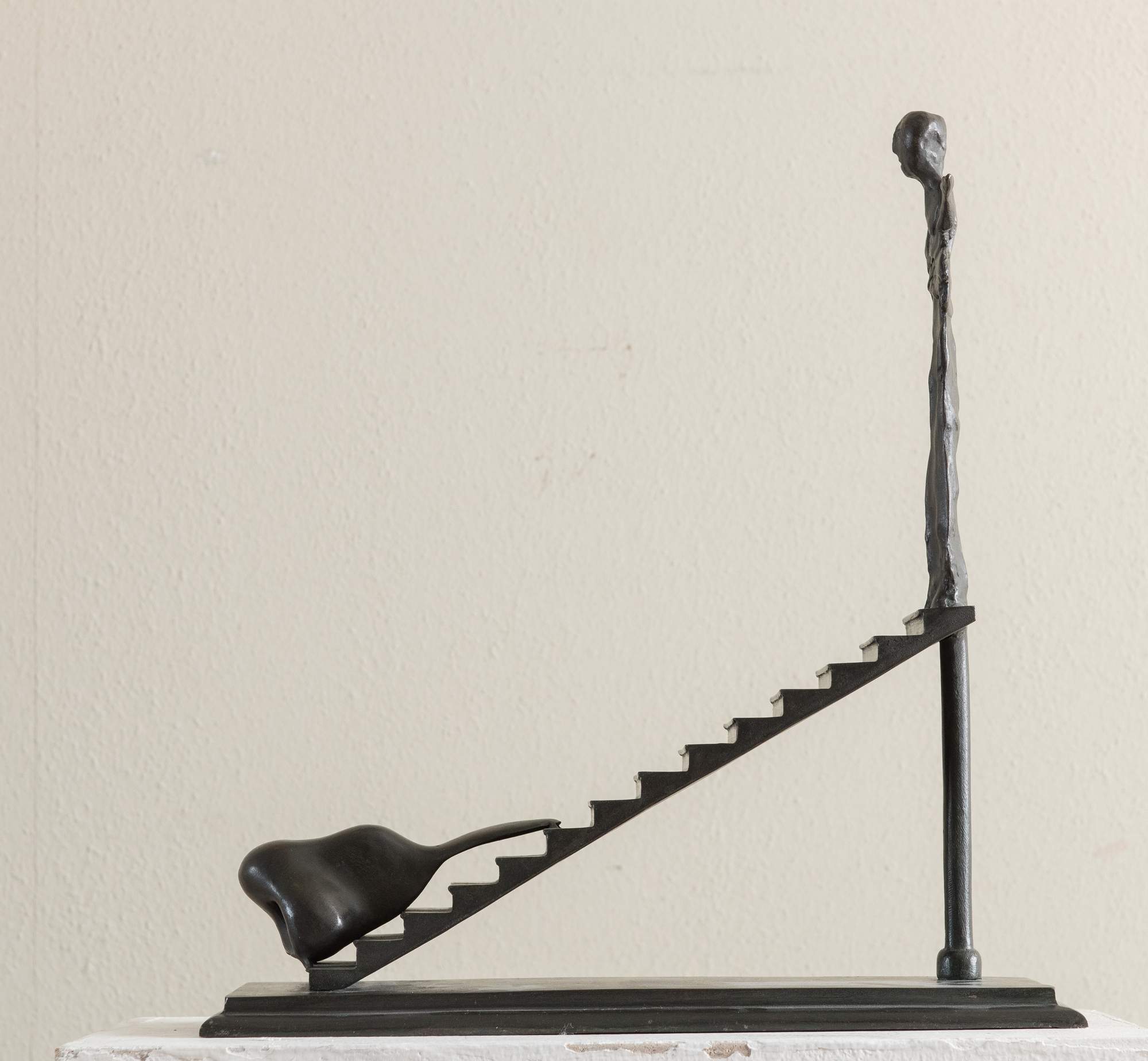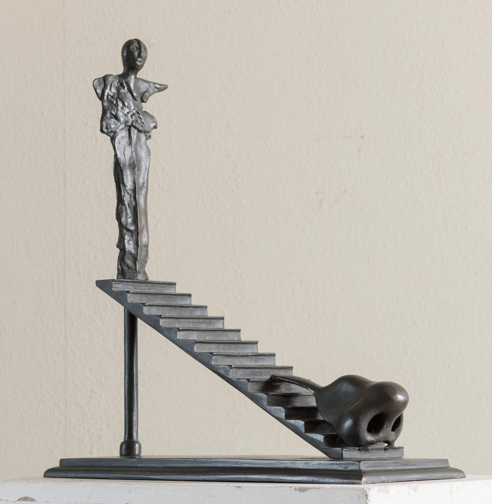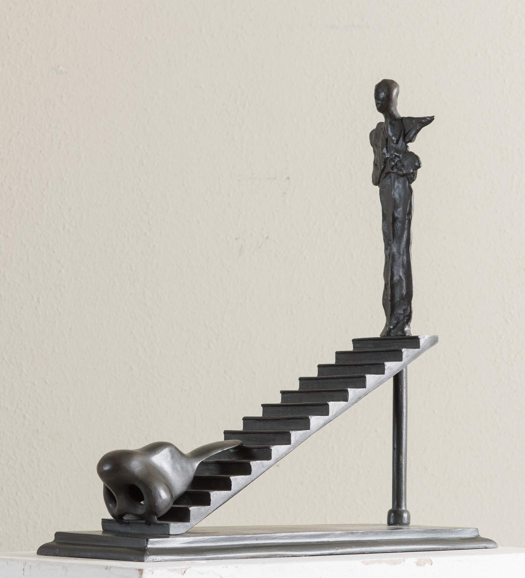 MIMMO PALADINO (Paduli 1948) "Scala con Naso e Figurina", 1999. Scultura in bronzo. Cm 36,5x33,5x13. Opera firmata e datata alla base M. Paladino 1999. Reca numeri di tiratura alla base 6/6.