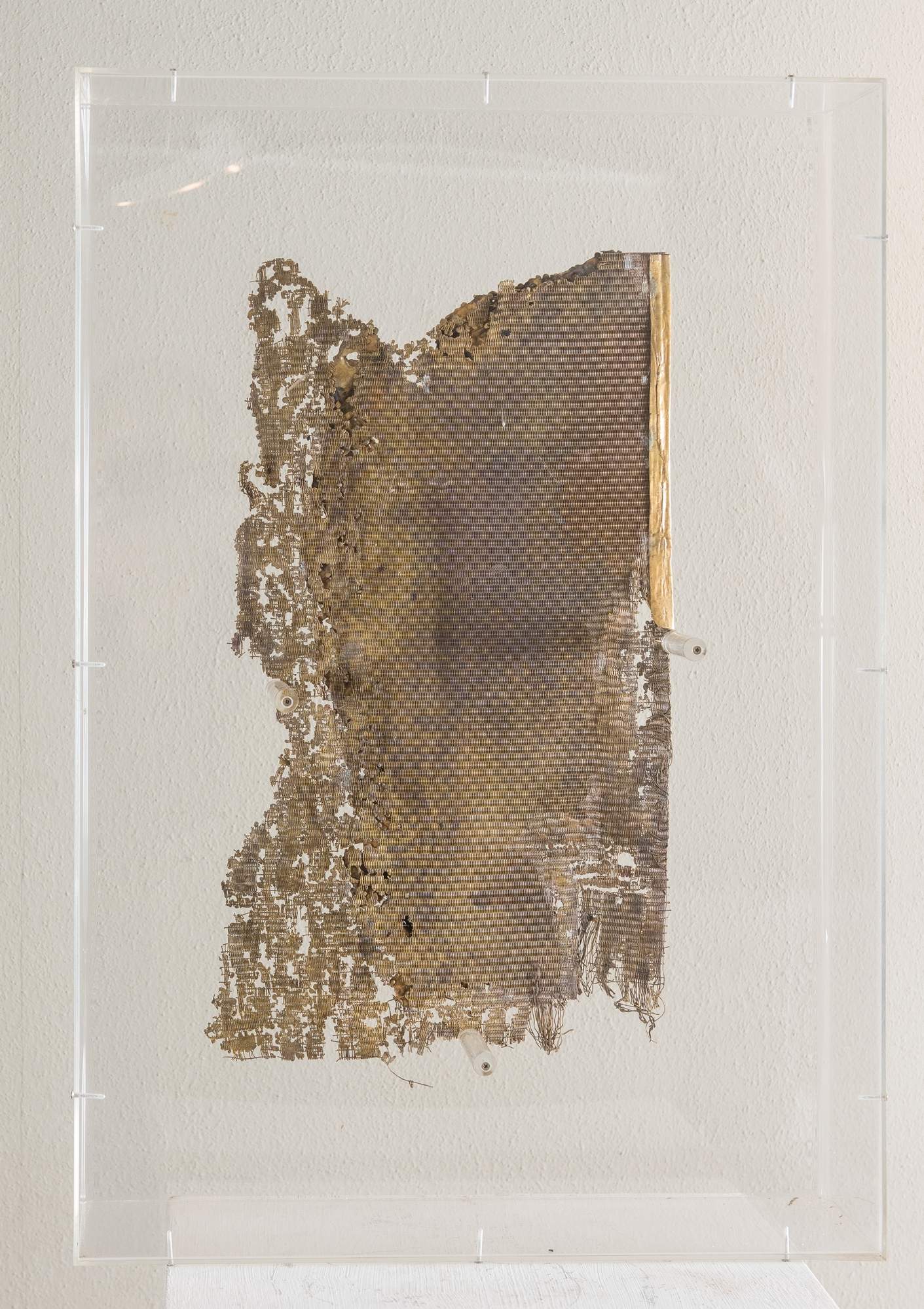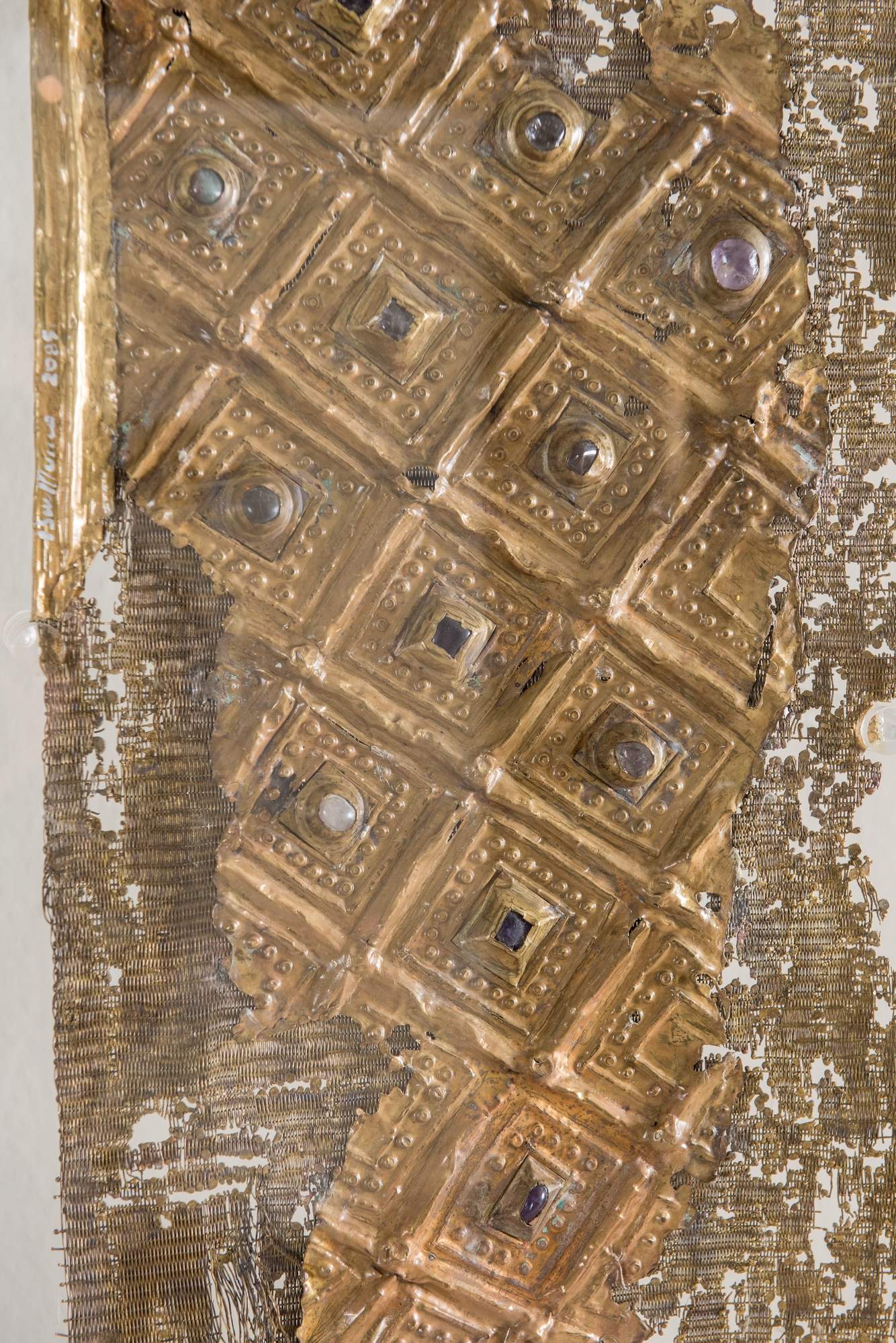 FRANCESCO BRUNETTI (Bologna 1941 - 1995) "Eldorado". Scultura in ottone cesellato a sbalzo con inserti di ametiste in teca di plexiglas. Cm 74x50x15. Opera firmata Brunetti 2085. Pubblicazione: "Francesco Brunetti, il racconto della materia", 2016 (catalogo della mostra presso Palazzo Garagnani, Crespellano di Valsamoggia, 22 settembre - 23 ottobre 2016), pag. 67. Esposizioni: mostra personale al Grand Hotel des Bains, Riccione, 1991.
