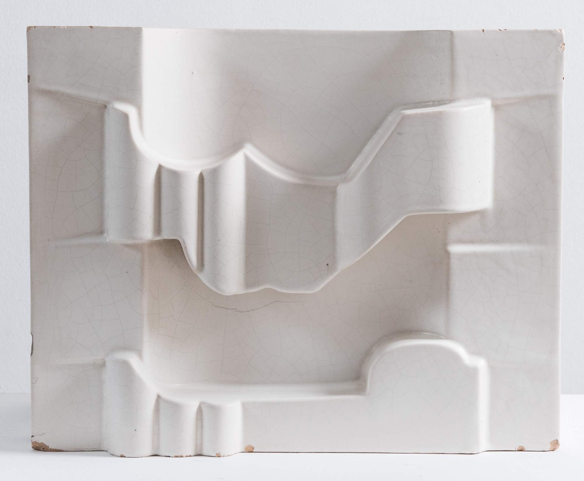 NINO CARUSO (Tripoli 1928 - Roma 2017) "Senza titolo". Modulo in ceramica smaltata. Cm 38x48x28,5. Reca timbro SM/4. (difetti)