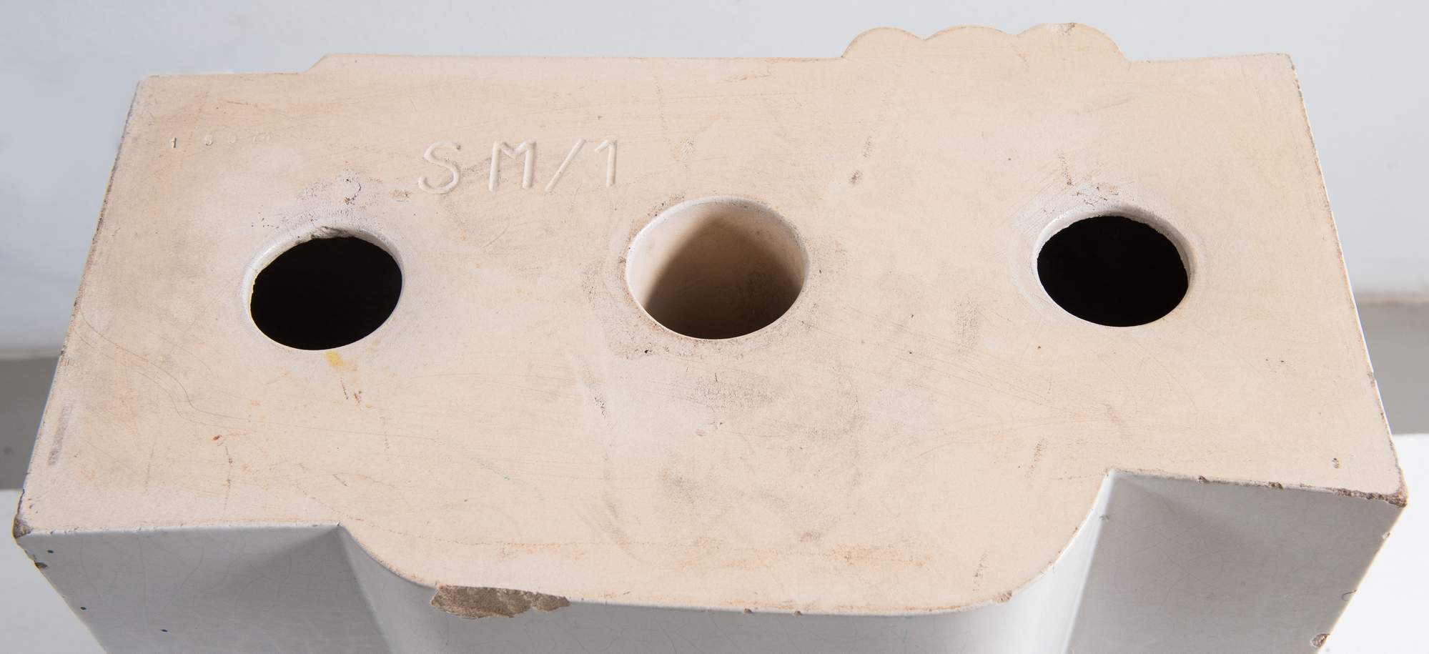 NINO CARUSO (Tripoli 1928 - Roma 2017) "Senza titolo". Modulo in ceramica smaltata. Cm 38x48x29. Reca timbro SM/1 (difetti)