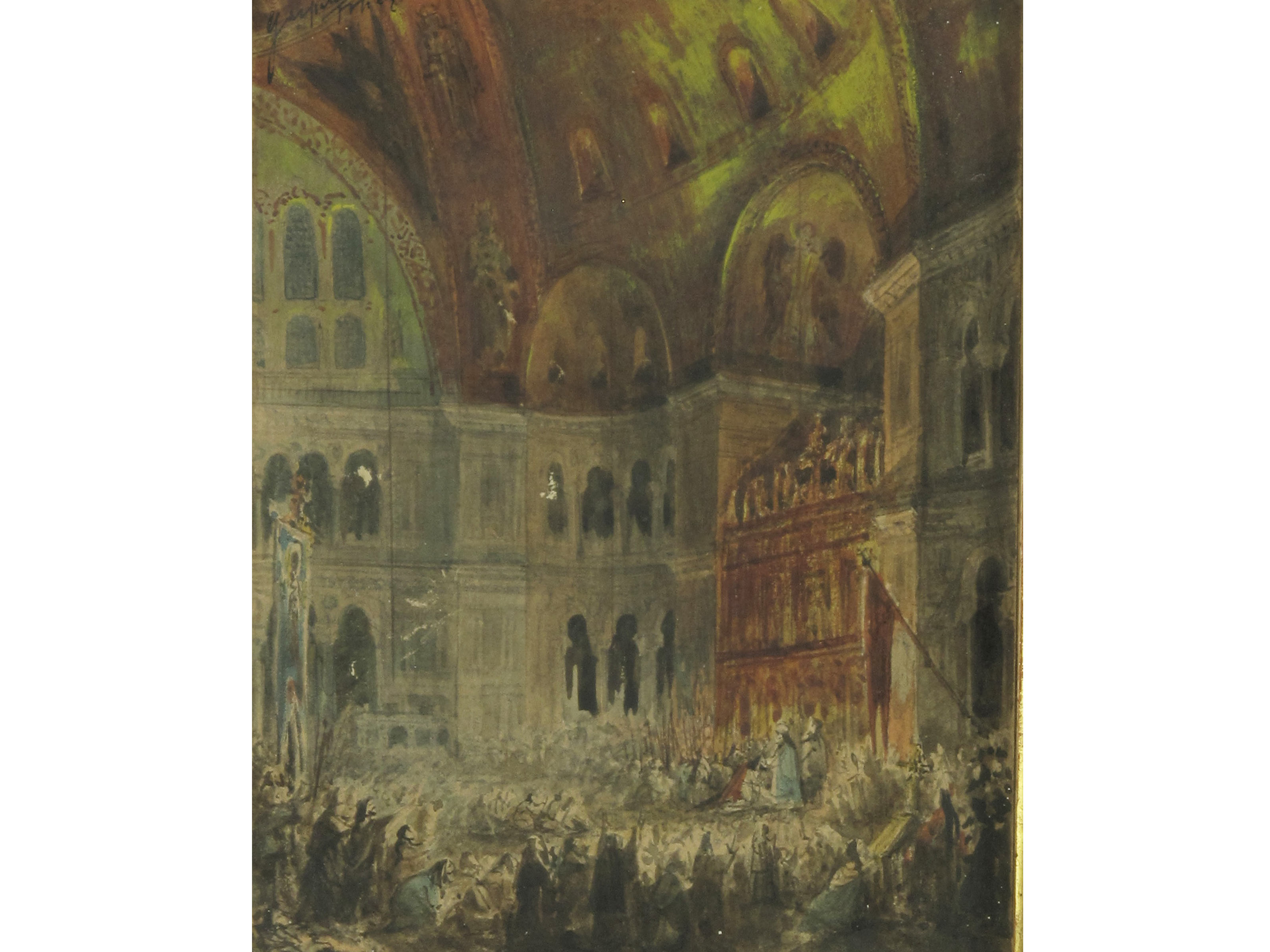 Firma illeggibile Interno di cattedrale Acquarello su carta Misure 19,3x15 cm