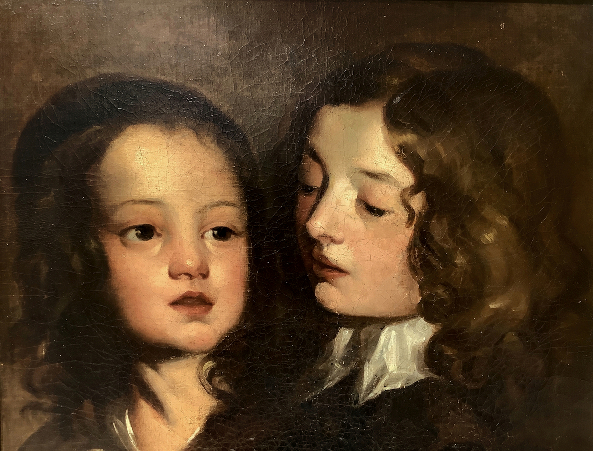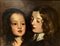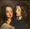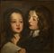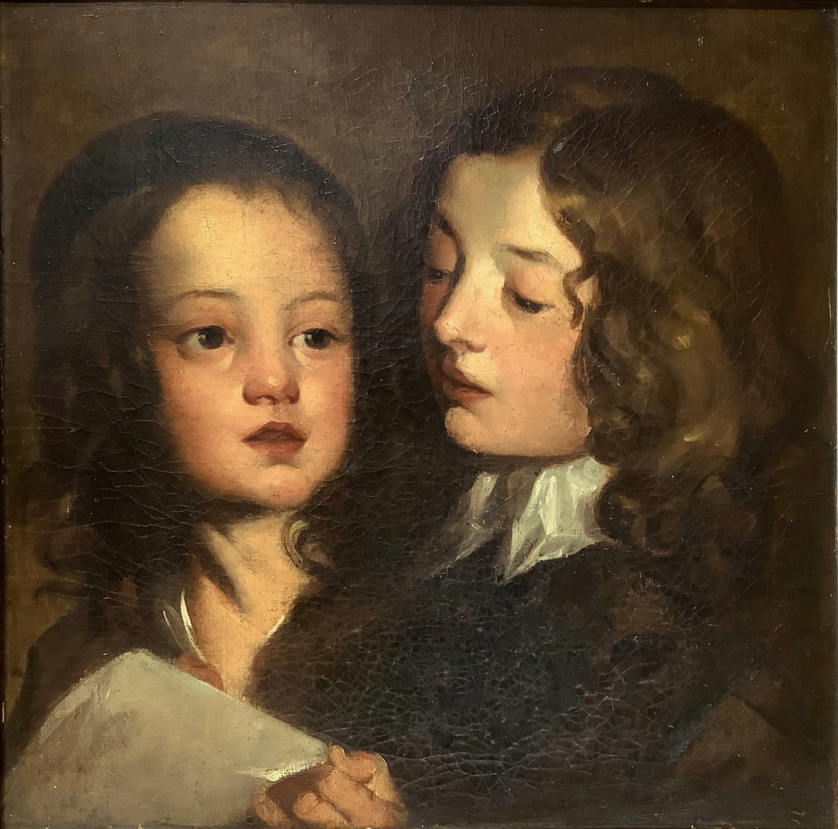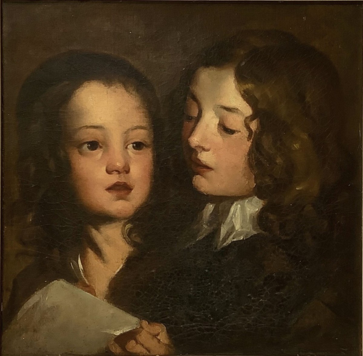 Dipinto ad olio su tela raffigurante viso di ragazzo e ragazza con lettera, pittore della prima metà del XIX secolo. Cm