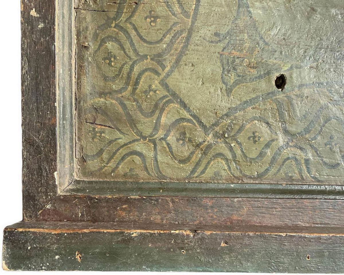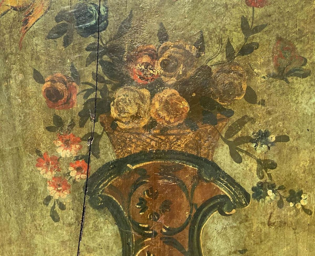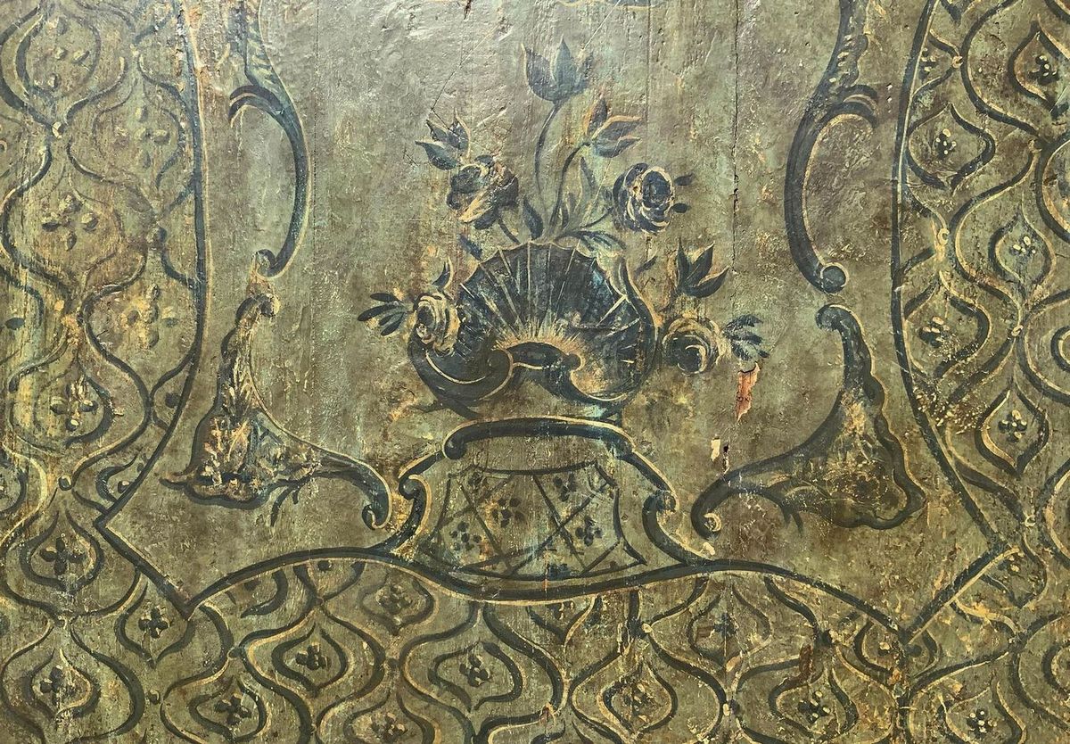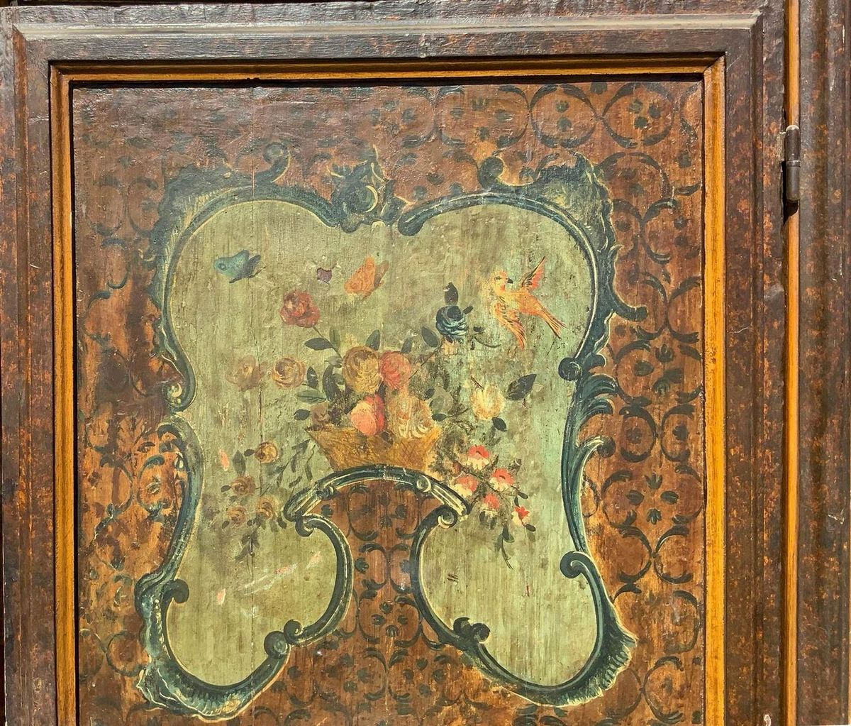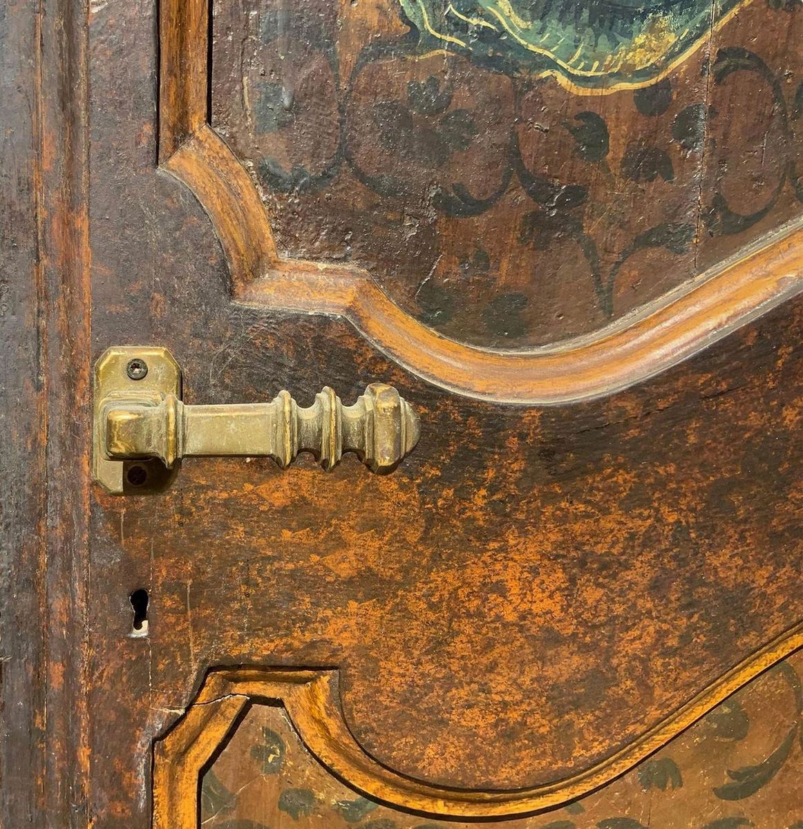 Porta in legno laccata e dipinta sul fronte e sul retro, Sicilia, XVIII secolo. Cm 190x86. Misure comprese del braghetto