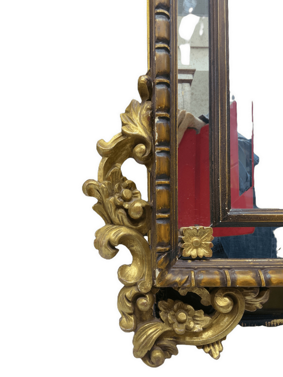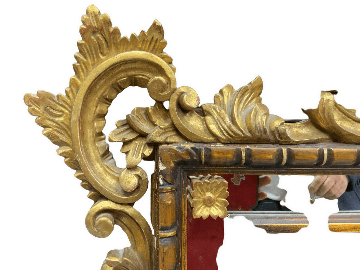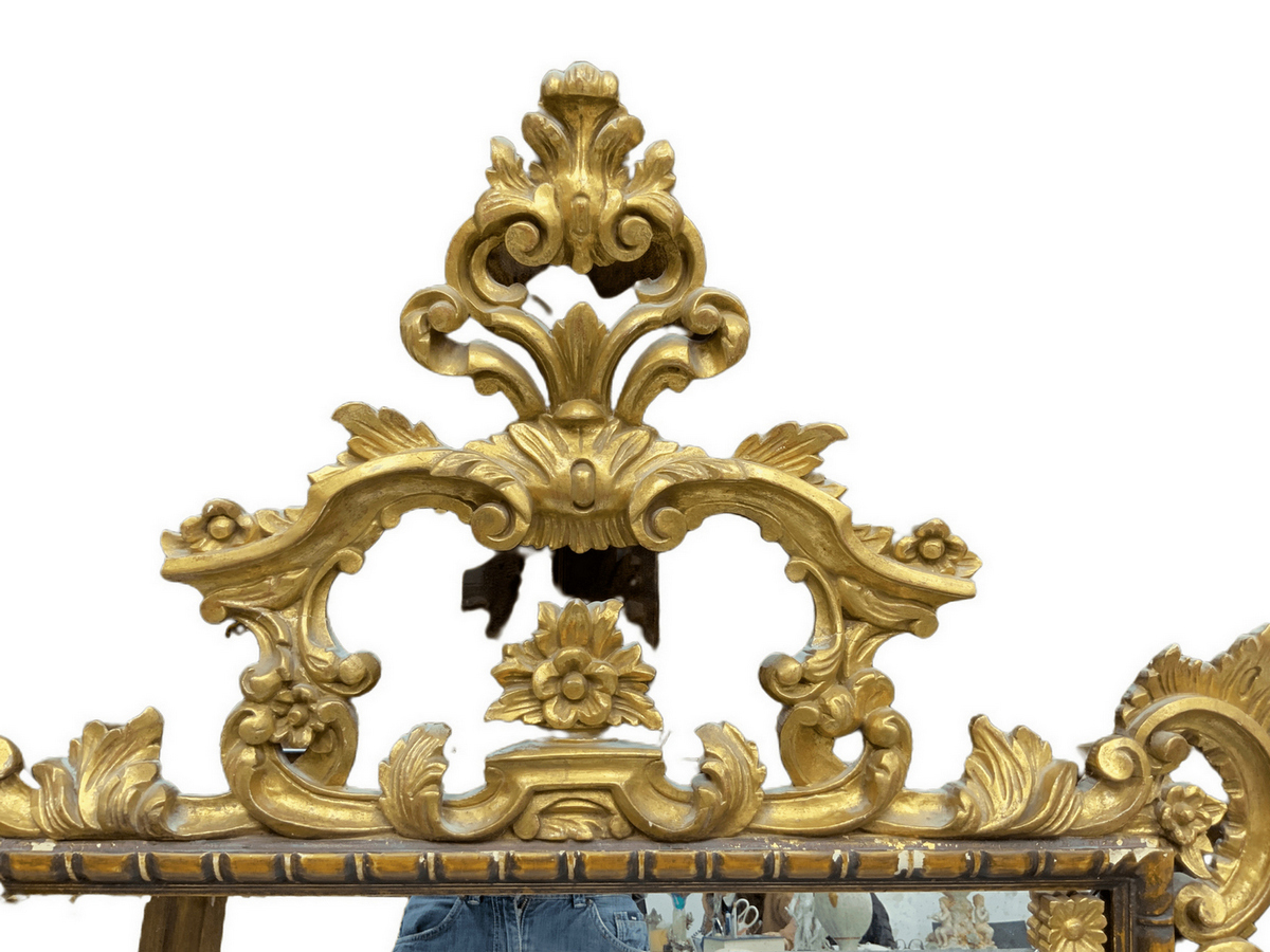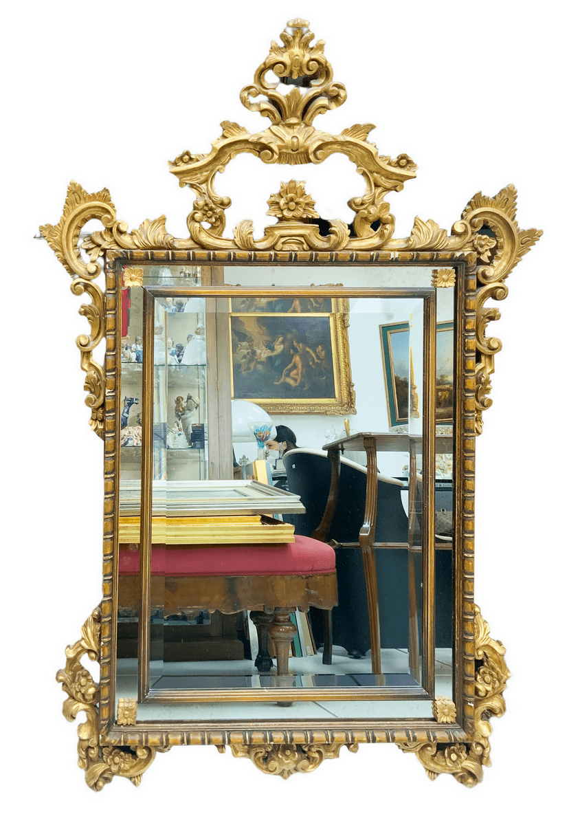 Specchiera con specchio molato in legno dorato a foglia. Cm 130x93