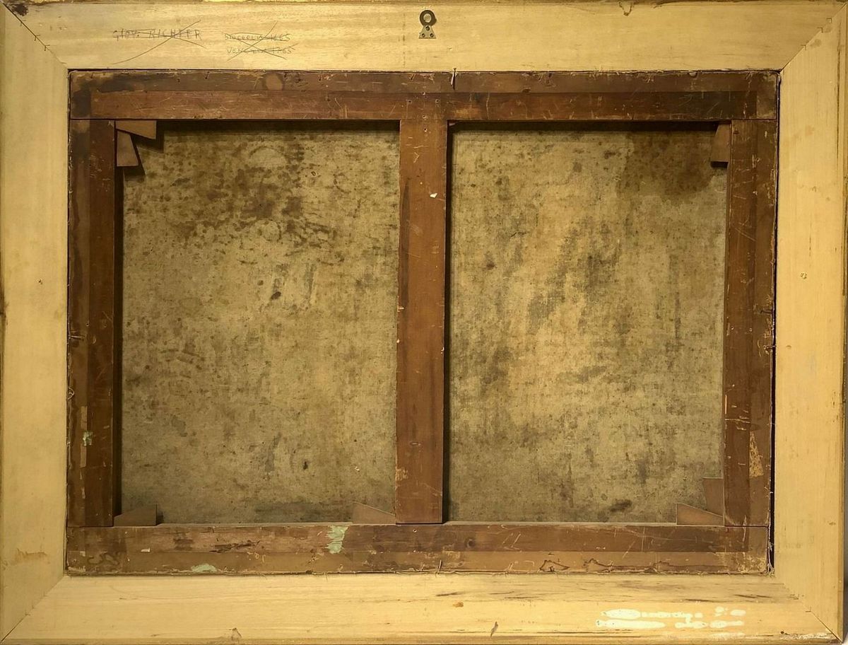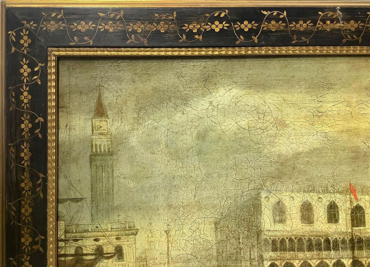 Dipinto ad olio su tela raffigurante Palazzo Ducale di Venezia, XVII/XVIII secolo, anonimo vedutista veneziano .Cm 70x100, in cornice cm 90x120.
