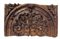 Frammento di fregio in legno di noce scolpito raffigurante Santa Barbara con puttini e satiri, XVII/XVIII secolo. Cm 42x