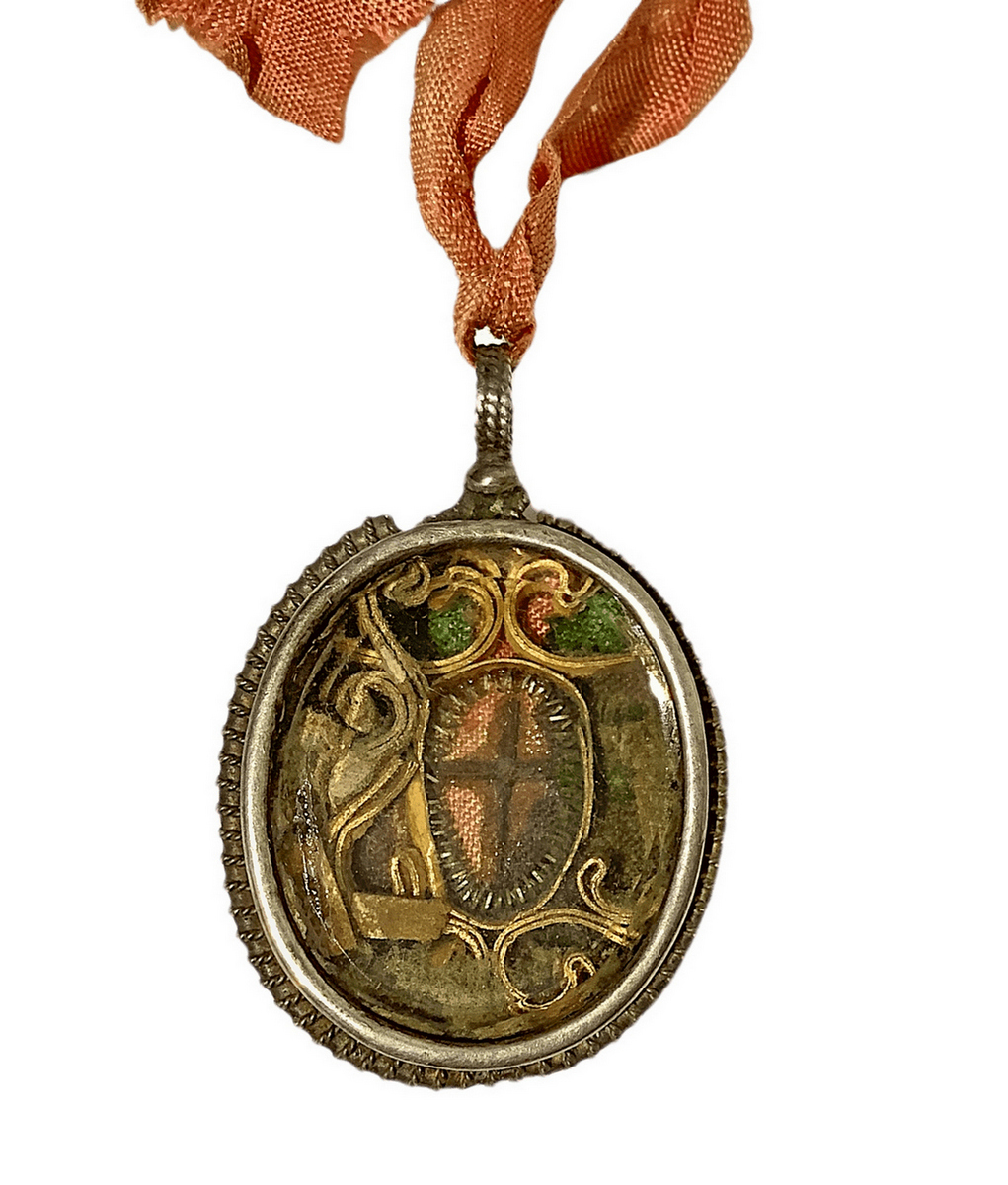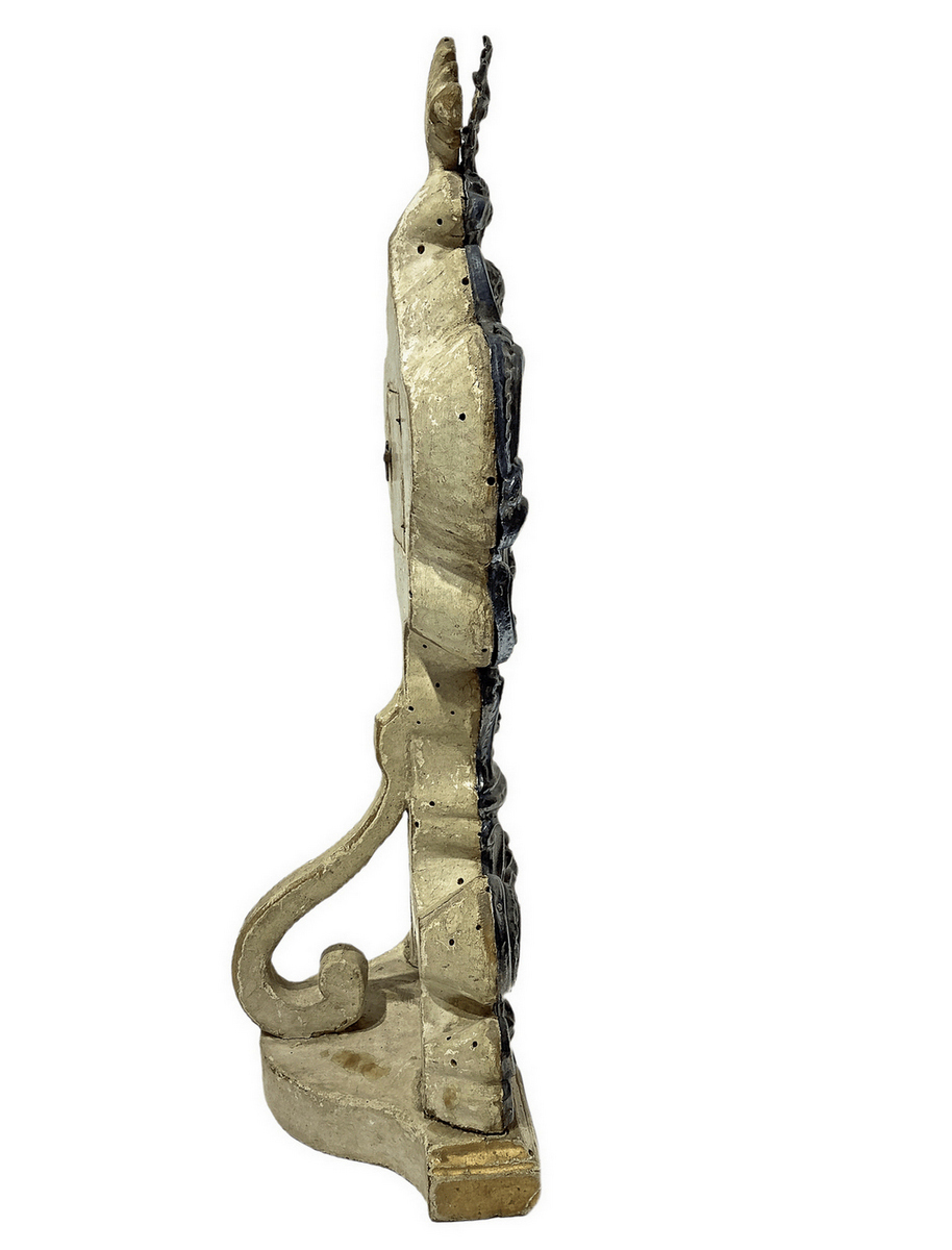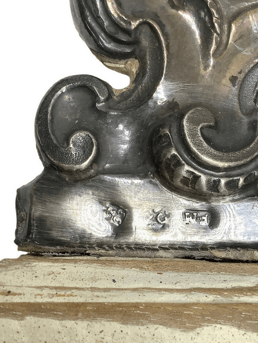 Reliquiario in argento, XVIII secolo su base lignea . Datato sulla base 1793. Iniziali F.M. H cm 37