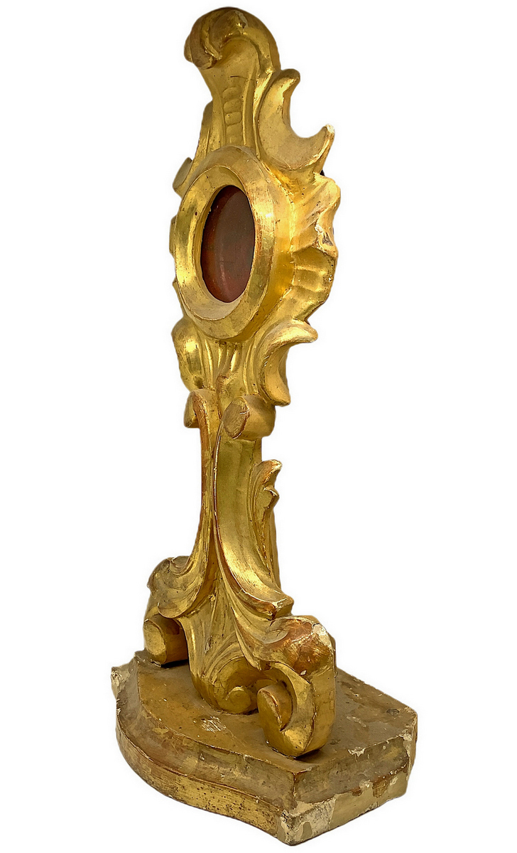 Lot 67 | Reliquiario in legno dorato a foglia, fine XVIII secolo. H cm 42