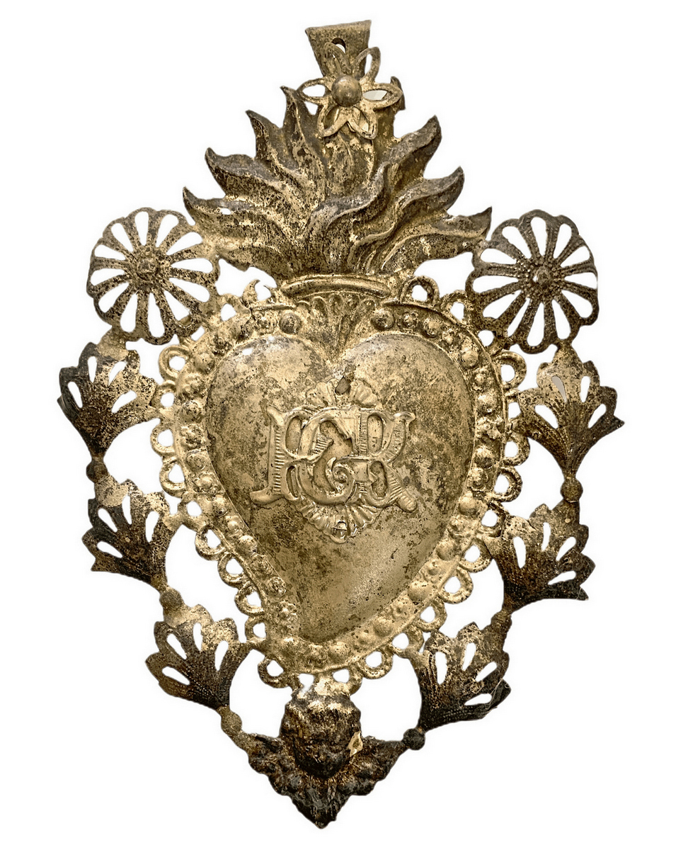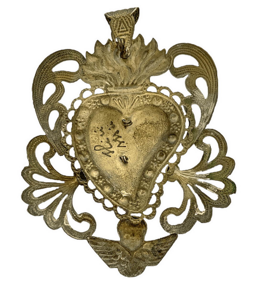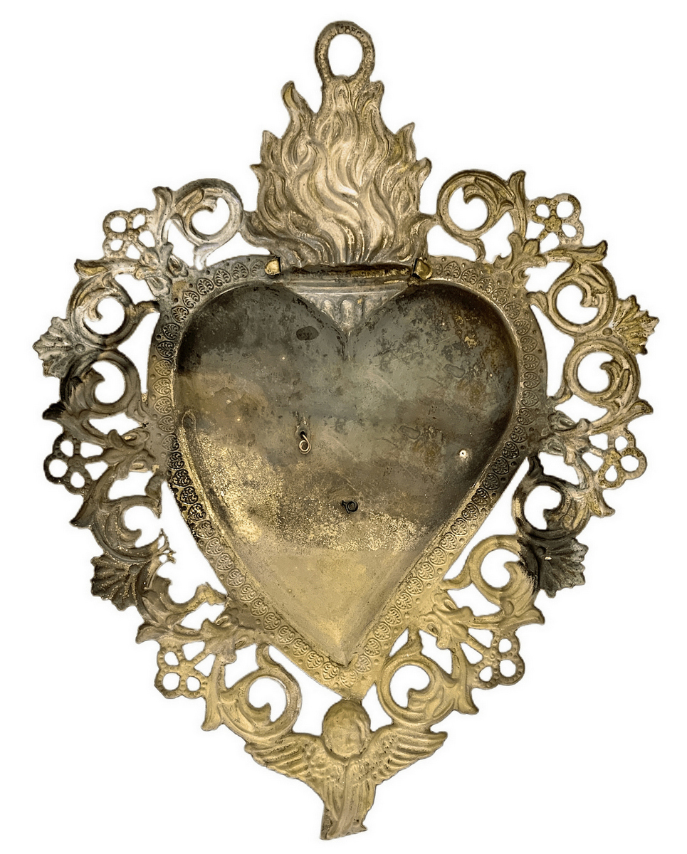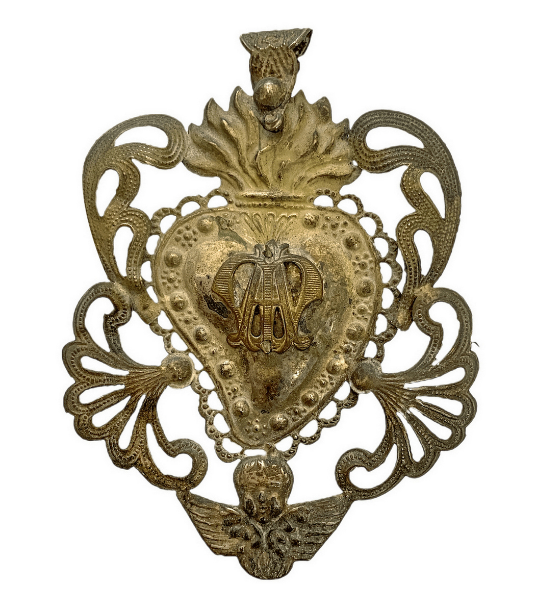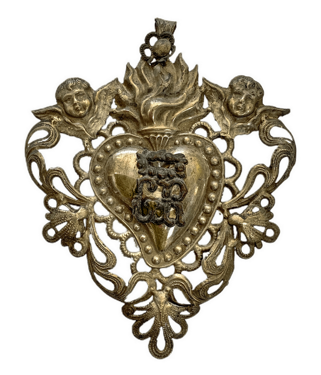 N 5 Ex voto in argento in parte a vermeil a forma di cuore con puttini e zefiri. 1) H cm 14,5; 2) H cm 10,5; 3) H cm 9;
