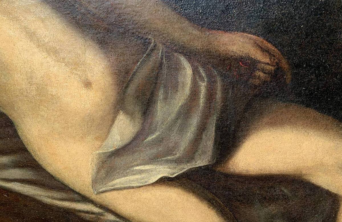 Dipinto ad olio su tela raffigurante Compianto del Cristo, Anonimo siculo-catalano del XV/XVI secolo. 181x126.