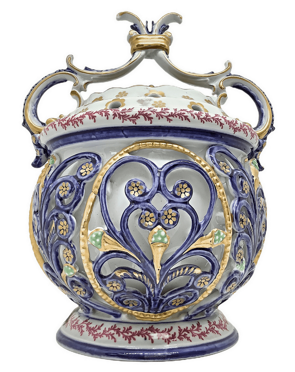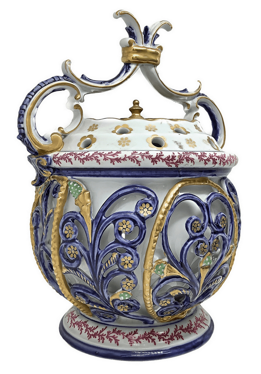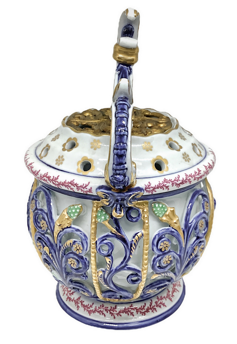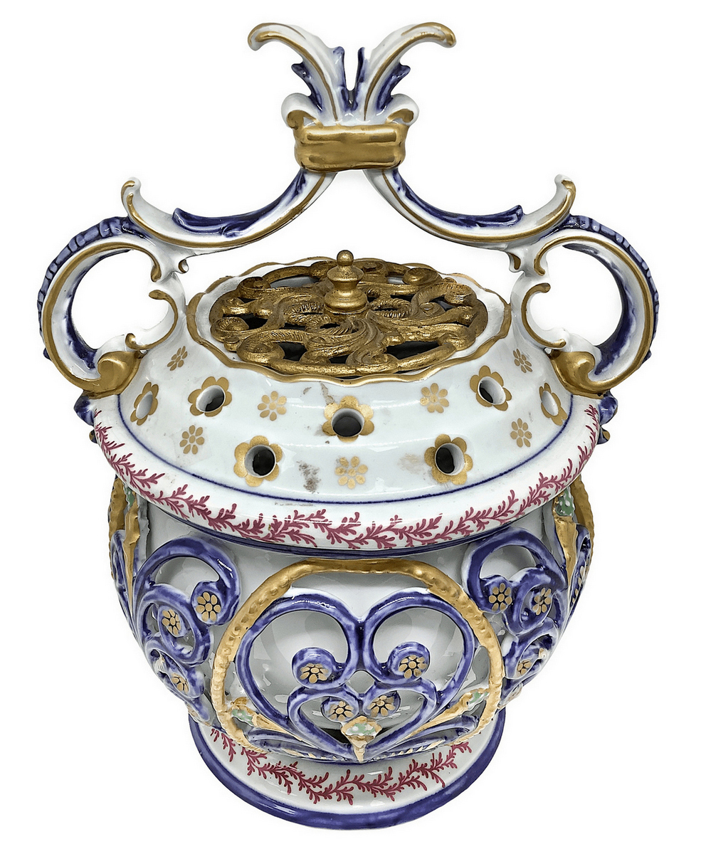 Bruciaprofumi in porcellana di Sevres.Coperchio in bronzo. H cm 24. Base cm 12