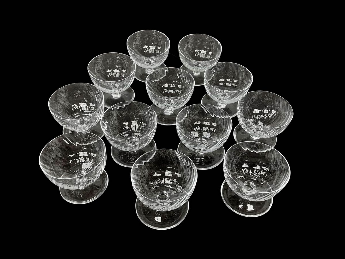 Servizio da macedonia composto da n. 12 coppette, Cristalleria de Hartzviller (Francia), anni '50. Realizzate a mano.