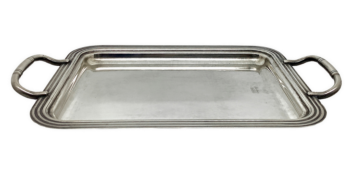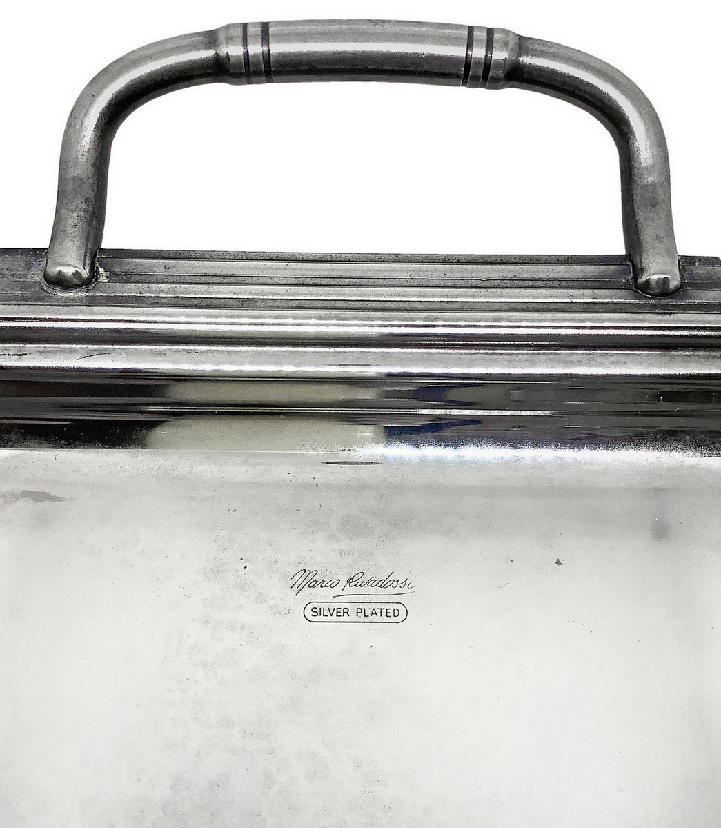 Vassoio in argentone. Firmato Mario Rivadossi. Cm 38x24