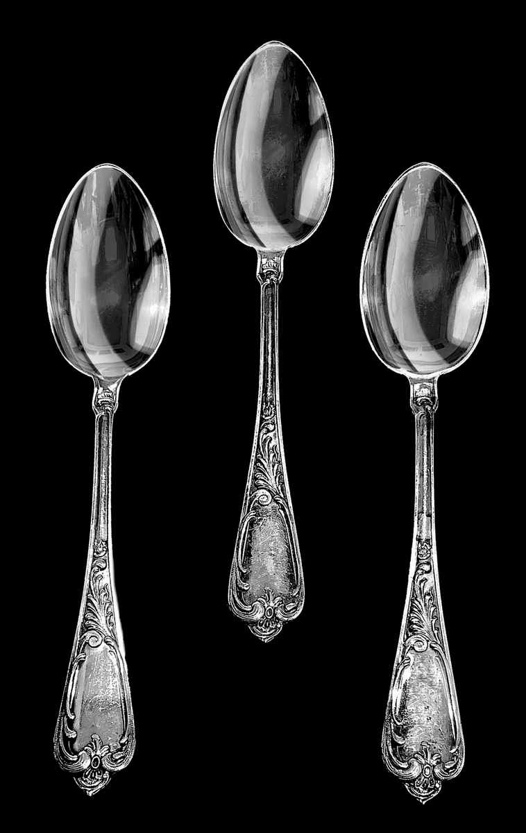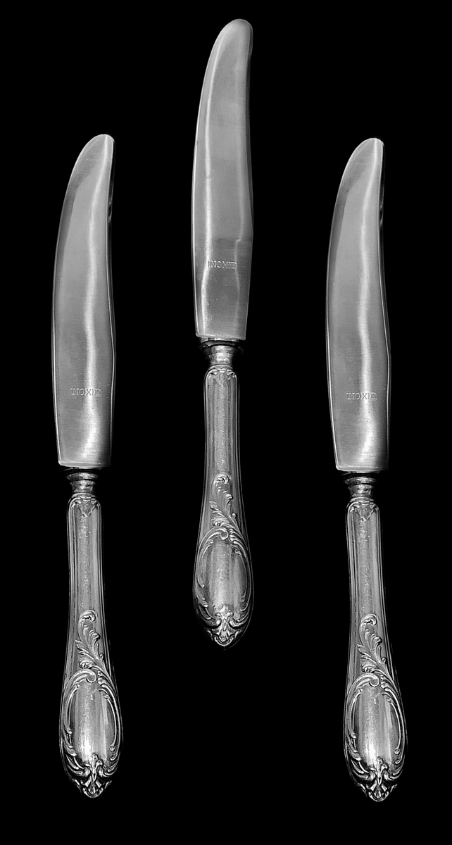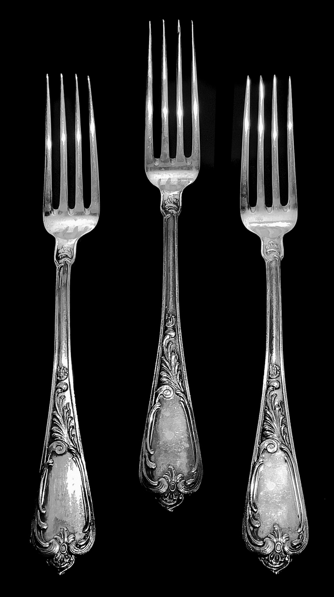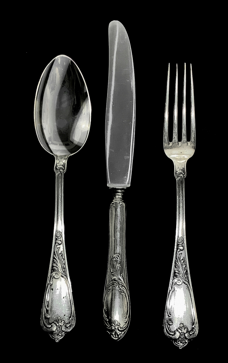 Servizio di posate in argento composto da 6 forchette (350 gr), 6 cucchiai (400 gr) e 6 coltelli