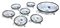Elegante servizio da macedonia in vetro di Murano, Italia, XX secolo. Composto da coppa centrale e 6 coppette, cesellato in azzurro con bordo in argento.