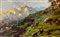 Dipinto ad olio su tela raffigurante paesaggio montano con personaggi, inizi XIX secolo. Cm 65x45. Datato IX (1930) e firmato in basso a sinistra