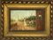 Dipinto ad olio su tavola raffigurante strada di campagna con dama. XIX , XX secolo. Cm 11x18. In cornice dorata cm 19x2