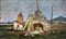 Dipinto ad olio su tavola raffigurante casolare di campagna con aia, XX secolo. In basso a destra moogramma A.B. Cm 12x1