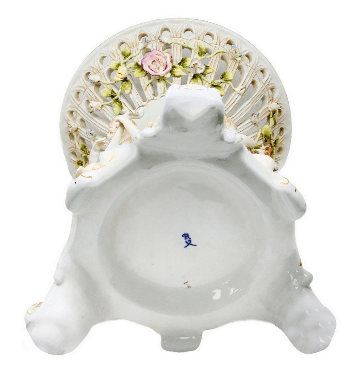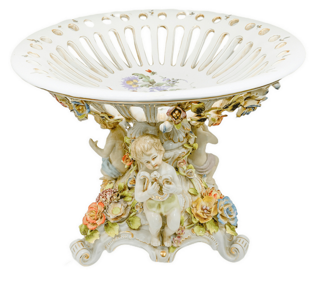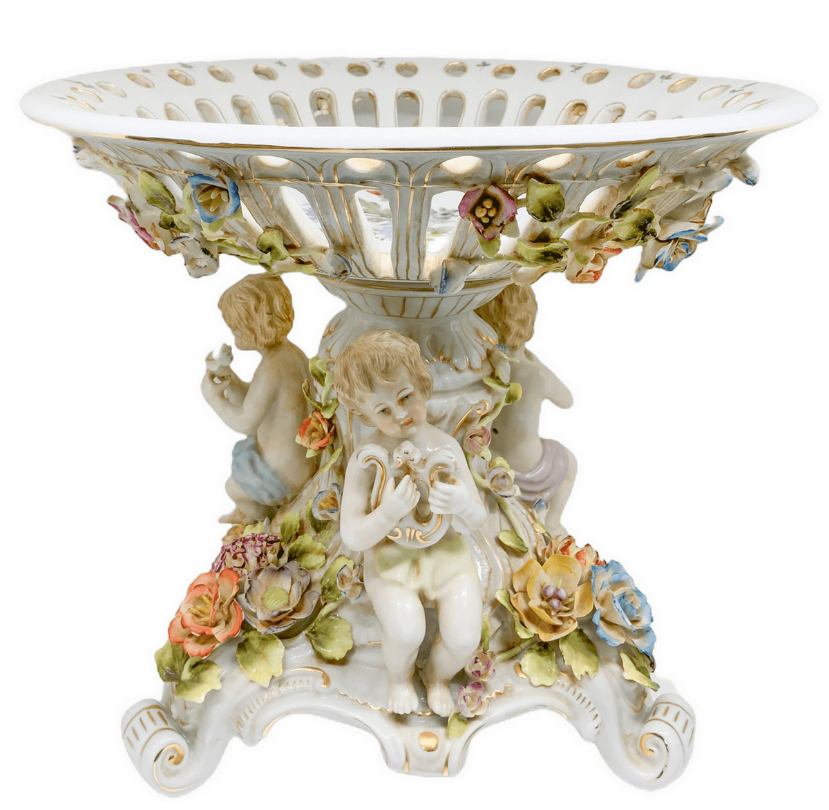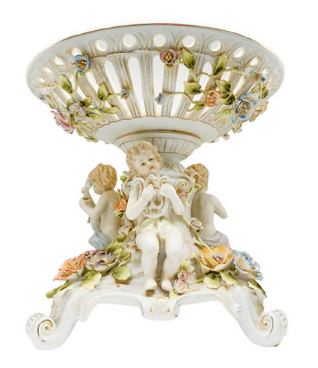 Centrotavola marcato Meissen, alla base putti musicanti. XX secolo. H cm 28