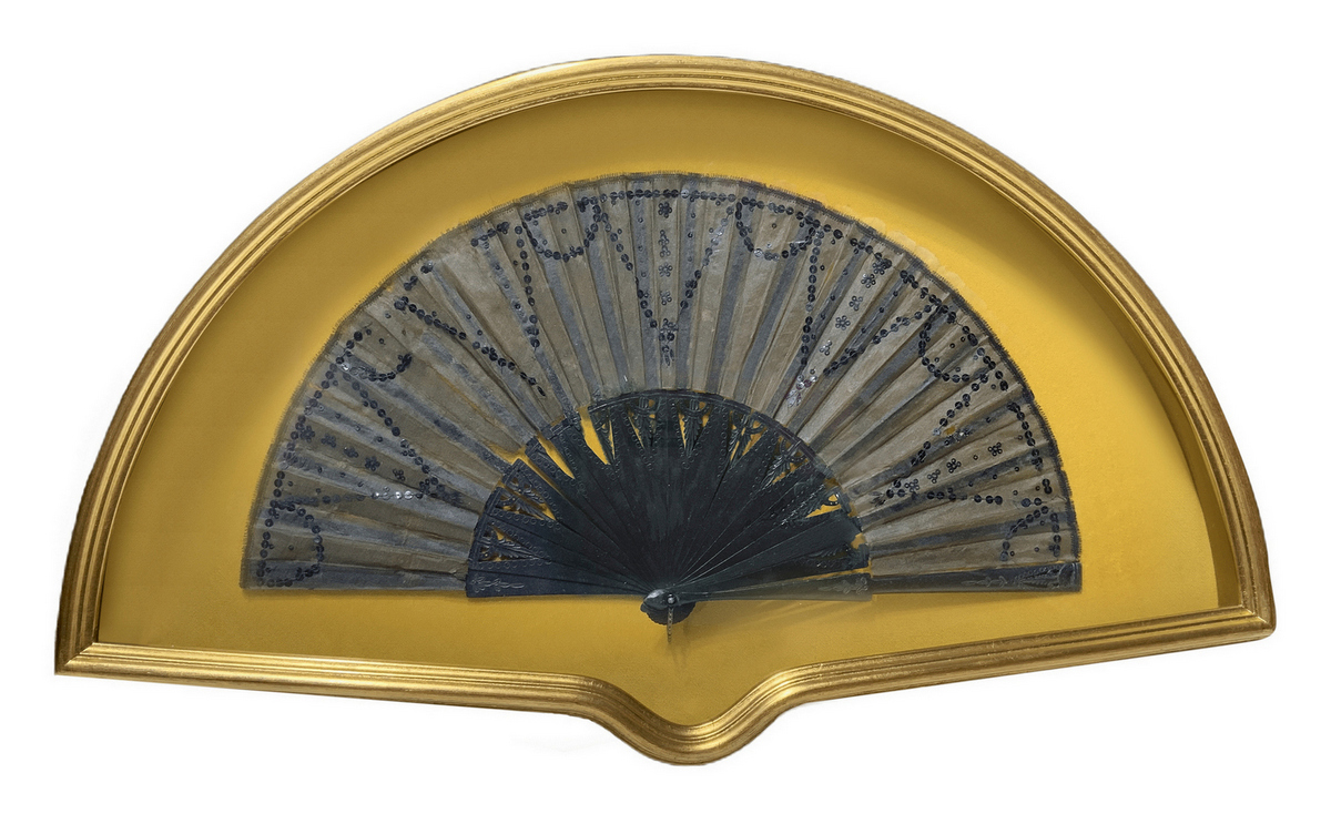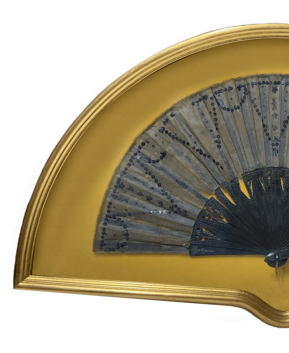 Ventaglio nero con paillettes in ventagliera. Inizi XX secolo. Cm 38x64