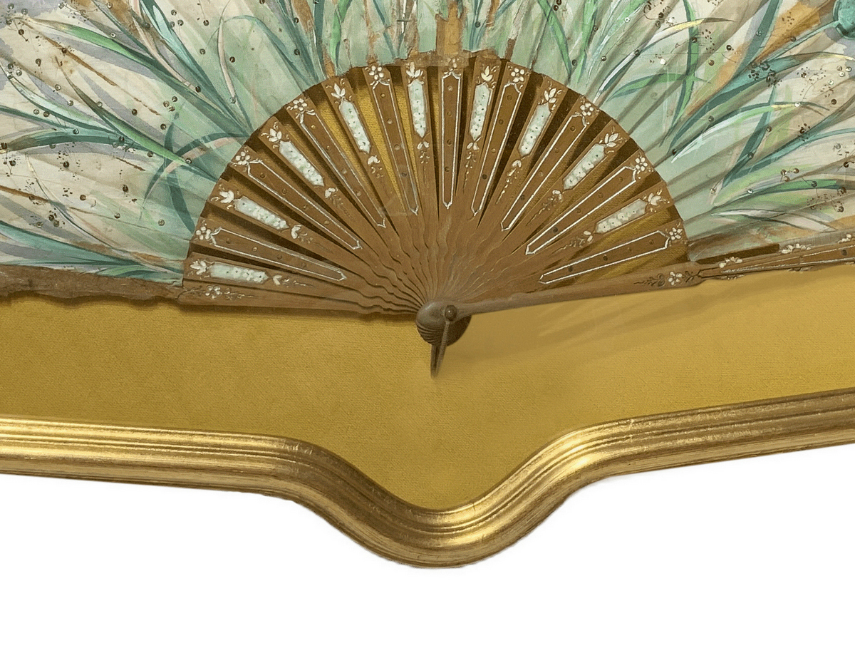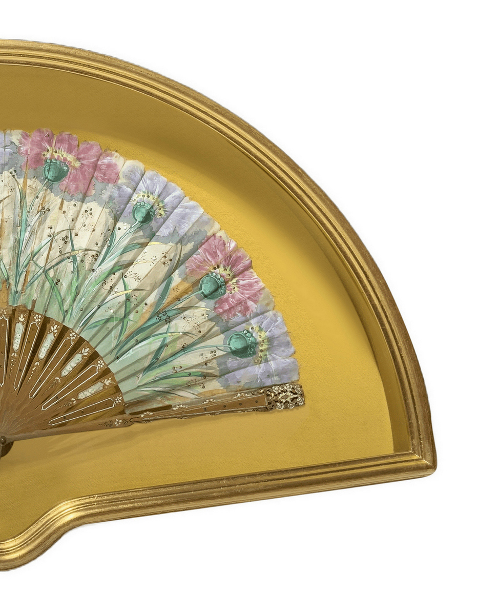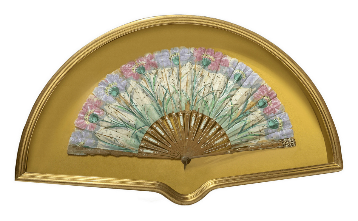Ventaglio dipinto a motivi floreali in ventagliera. Inizi XX secolo. Cm 38x64