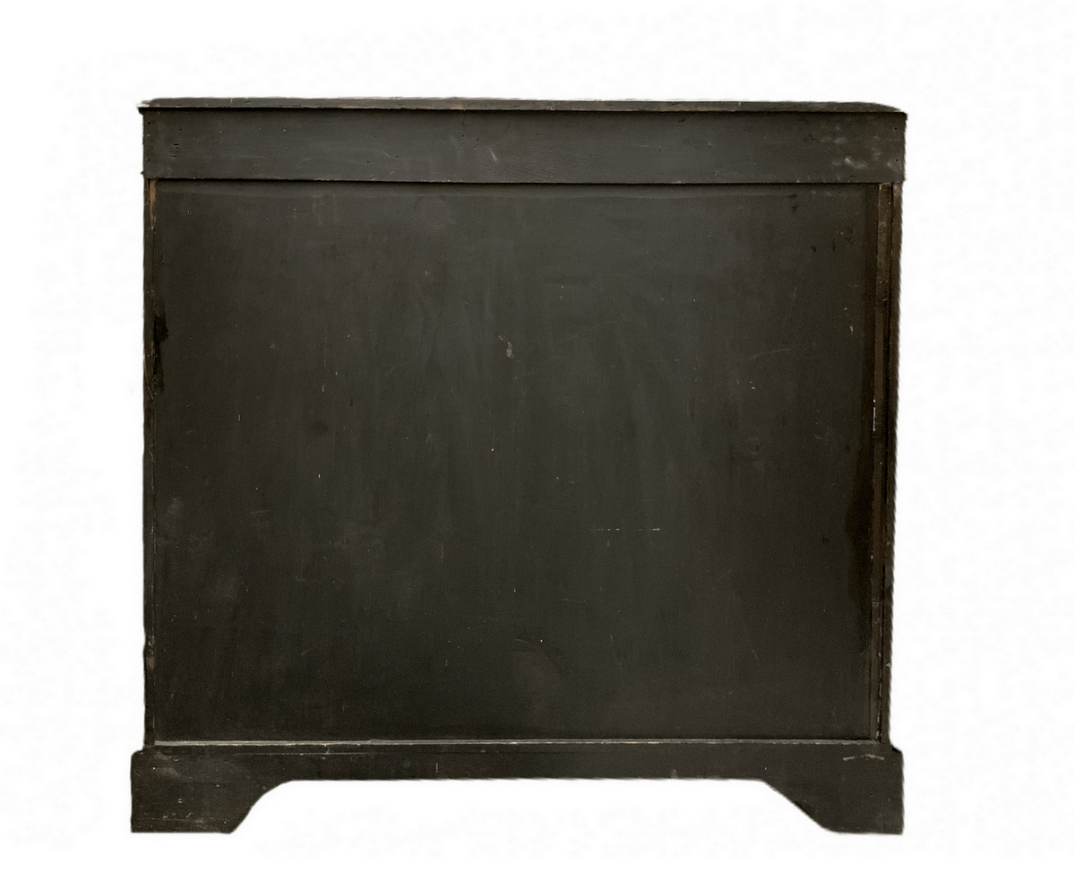 Vetrina bassa in legno nero ebanizzato e intarsi in ottone dorato e bronzi applicati, due sportelli a vetri, interno con