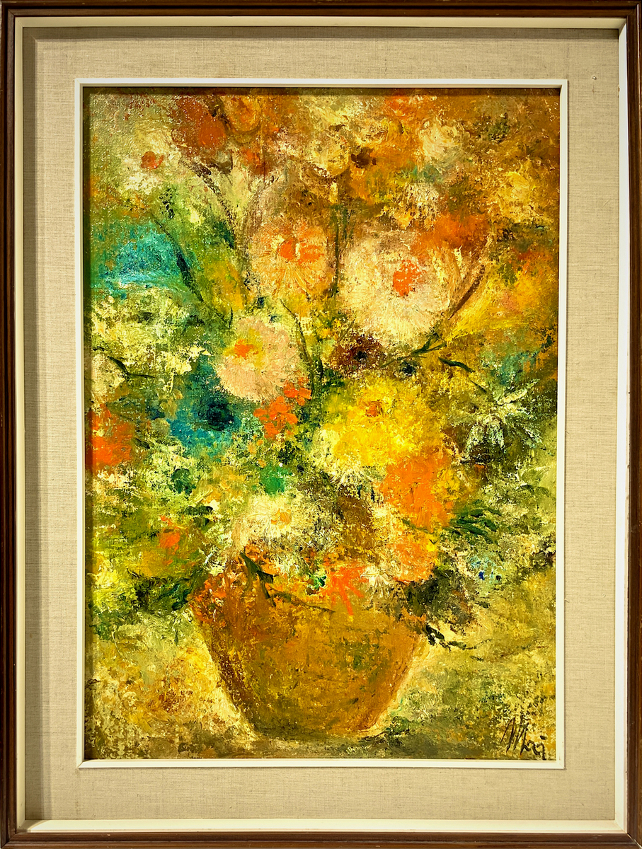 Lot 162 | Dipinto ad olio su tela raffigurante vaso con fiori, firmato Mai. Cm 70x50