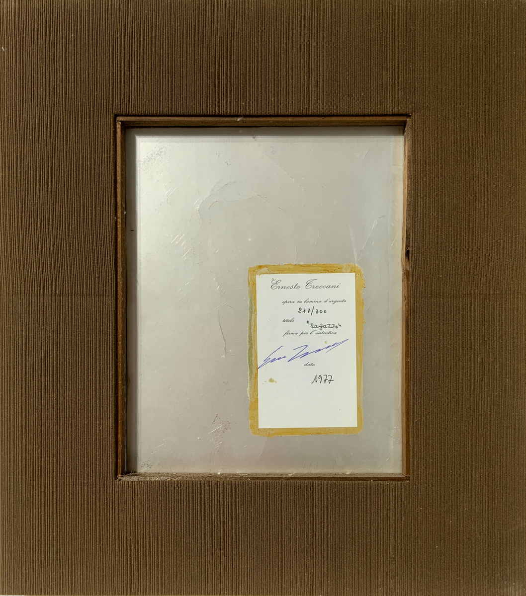 Ernesto Treccani (Milano, 1920 - Milano, 2009), Litografia su lamina d’argento raffigurante “Ragazzo" (1977). N 217/