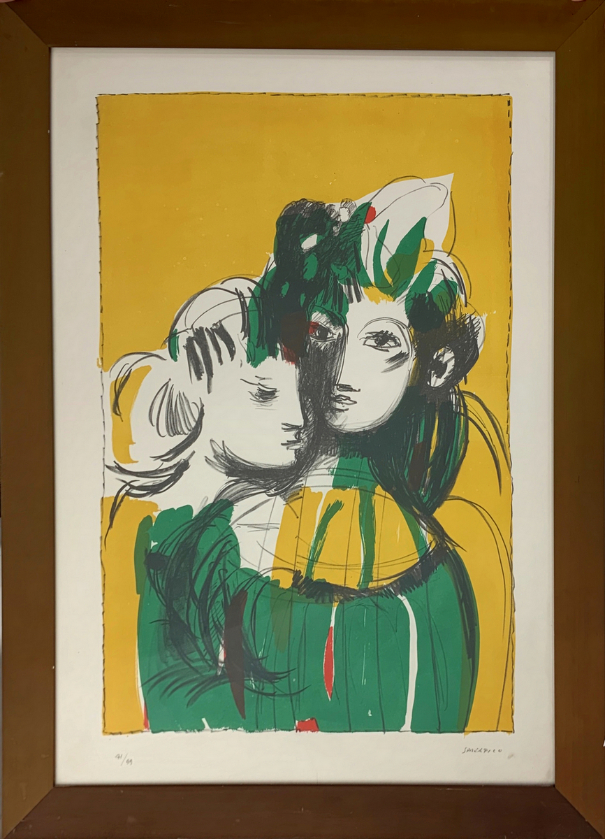 Spreafico, Litografia raffigurante ragazze. N.71/99. Cm 70x50 , in cornice 79x49.