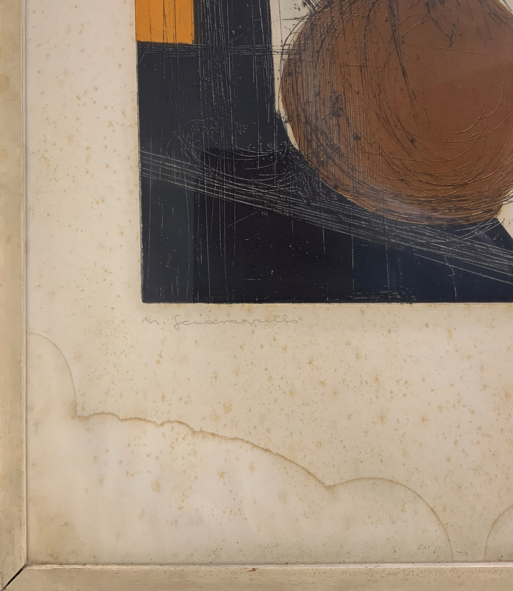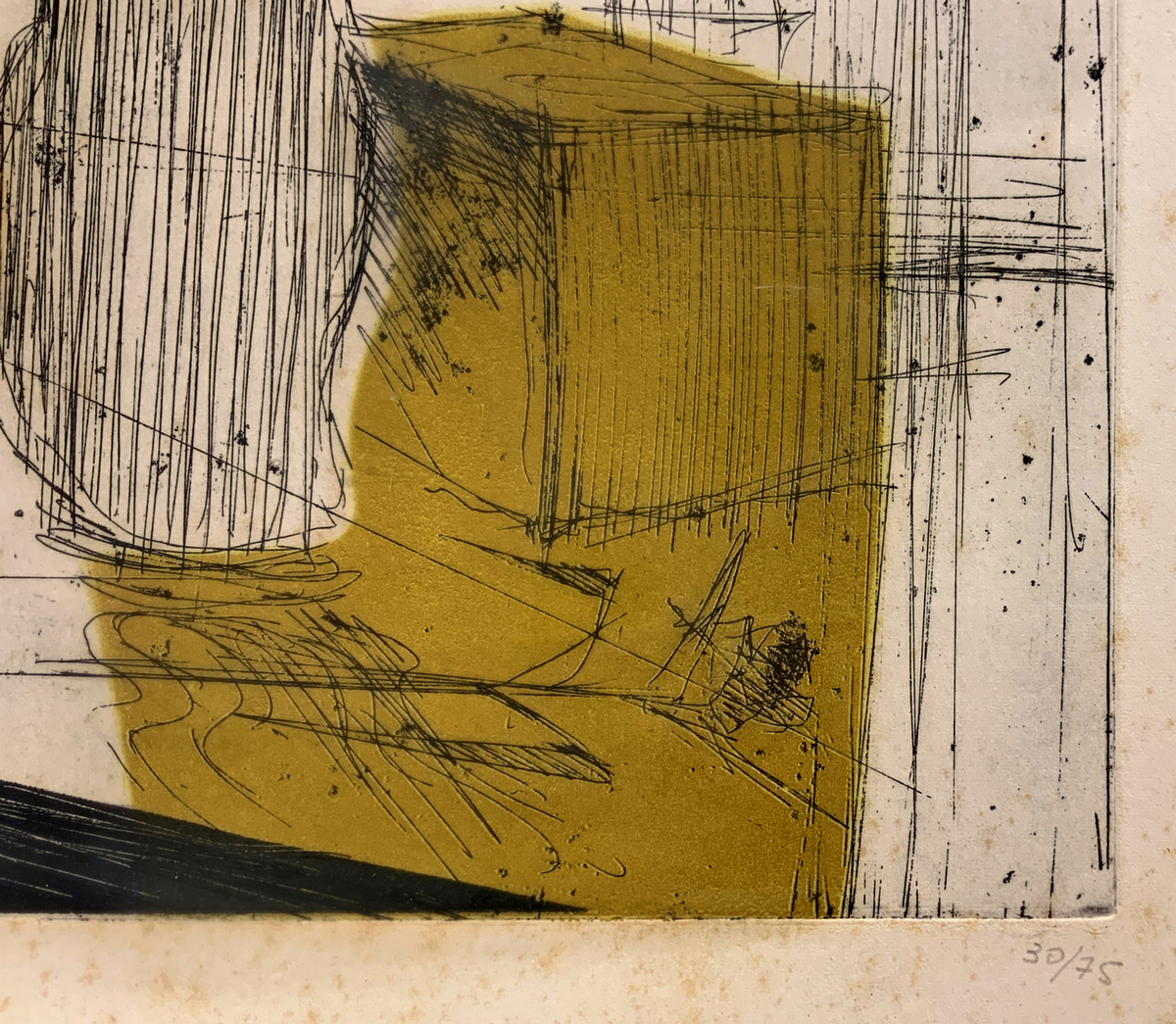 Nunzio Sciavarrello (Bronte, 1918 - Catania, 2013), Litografia raffigurante natura morta di vasi. Firmata in basso a sinistra 30/75. Cm 63x49, in cornice cm 90x66