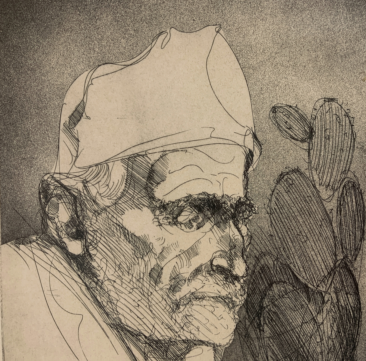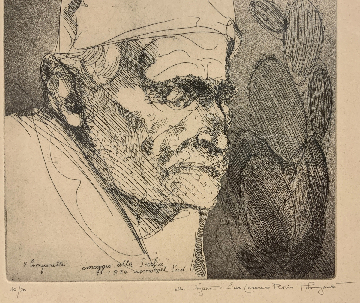 Trento Longaretti (Treviglio, 27 settembre 1916 – Bergamo, 7 giugno 2017). Longaretti T., Litografia su carta raffigurante volto siciliano, firmata T. Longaretti, 1974. Cm 50x35.