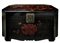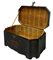 Antico baule cinese da viaggio in legno laccato dipinto a mano sul fronte con decori floreali, sul piano superiore con p