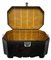 Antico baule cinese da viaggio in legno laccato dipinto a mano sul fronte con decori floreali, sul piano superiore con personaggi cinesi. Maniglie laterali in metallo, rivestito internamente con carte d'epoca. H cm 36xcm 76x45