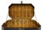 Antico baule cinese da viaggio in legno laccato dipinto a mano sul fronte con decori floreali, sul piano superiore con p