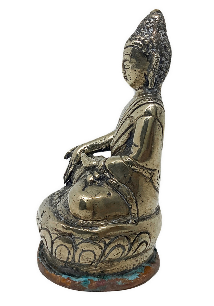 Piccola statua in metallo dorato raffigurante Buddha, inizi XX secolo. H cm 8