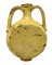 Fiaschetta biansata in terracotta maiolicata di Caltagirone, Sicilia, fine sexolo XIX . Nei toni del giallo, verde e bruno. Al centro fiore stilizzato. H cm 23x17