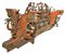 Frammento di carretto, fascia di fuso. In legno policromo scolpito a putti, mascheroni e ferro battuto alla forgia in st
