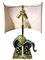 Lampada raffigurante drago, Capodimonte. Smaltato nei toni del turchese e nero, con base in lucite, anni 70. H cm 58 x 30x14