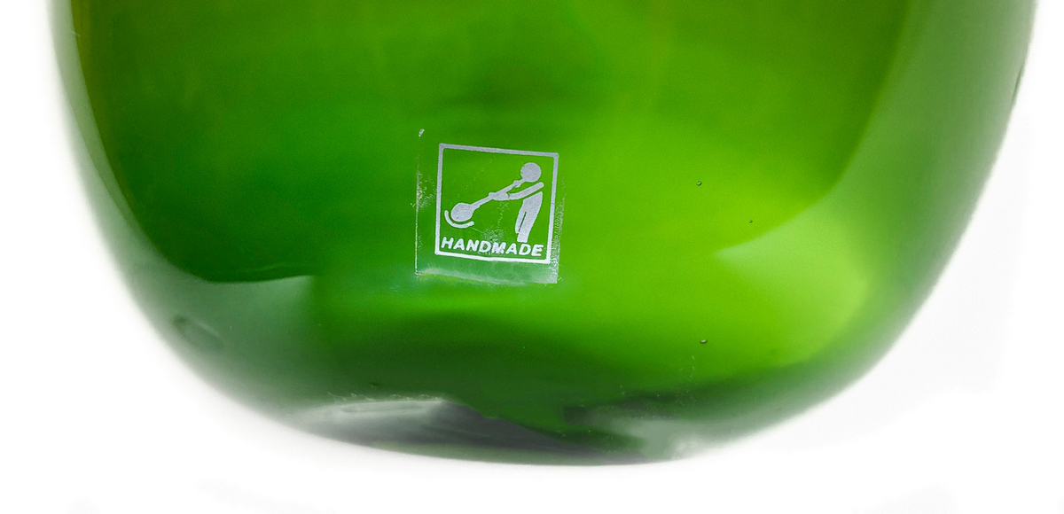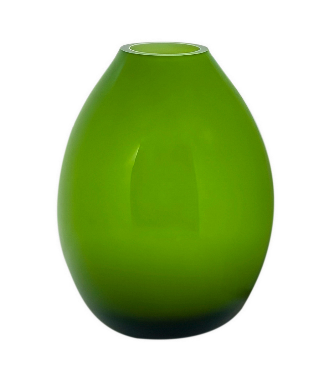 Vaso in vetro di Murano, di forma globulare, in vetro incamiciato nei toni del verde. h cm 15.