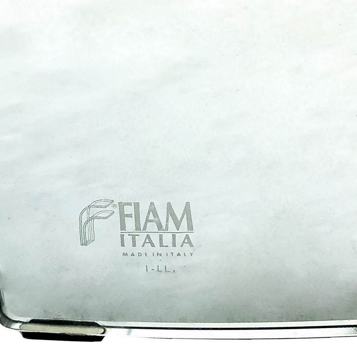 Fiam, scrivania in vetro con piano a demilune, piede formato da una lastra di vetro curvato di forte spessore. Anni '80.