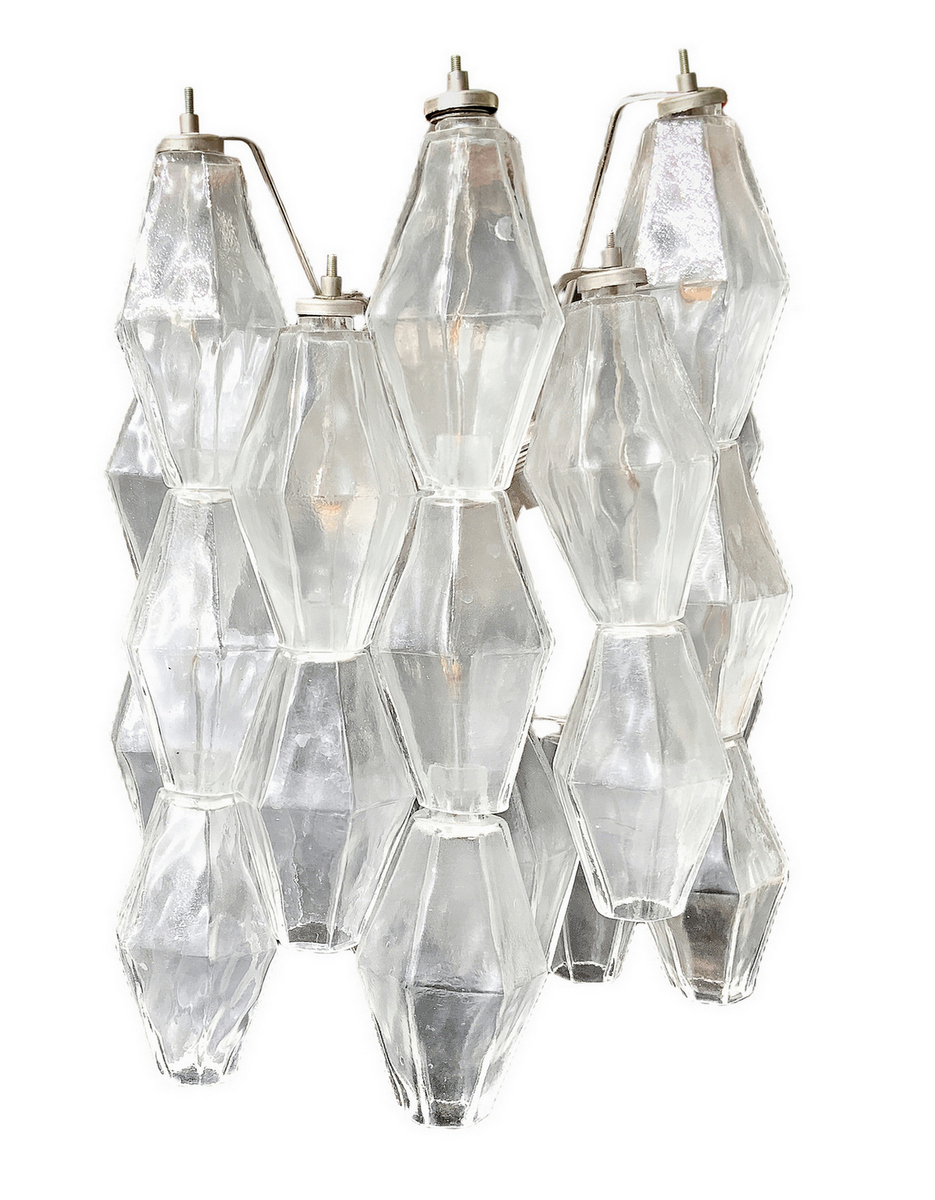 Produzione Muranese, nello stile di Carlo Scarpa N. 1 applique con struttura in metallo laccato, una in bianco, una cromata ed elementi in vetro trasparente. Anni ’70. H cm 40 x28