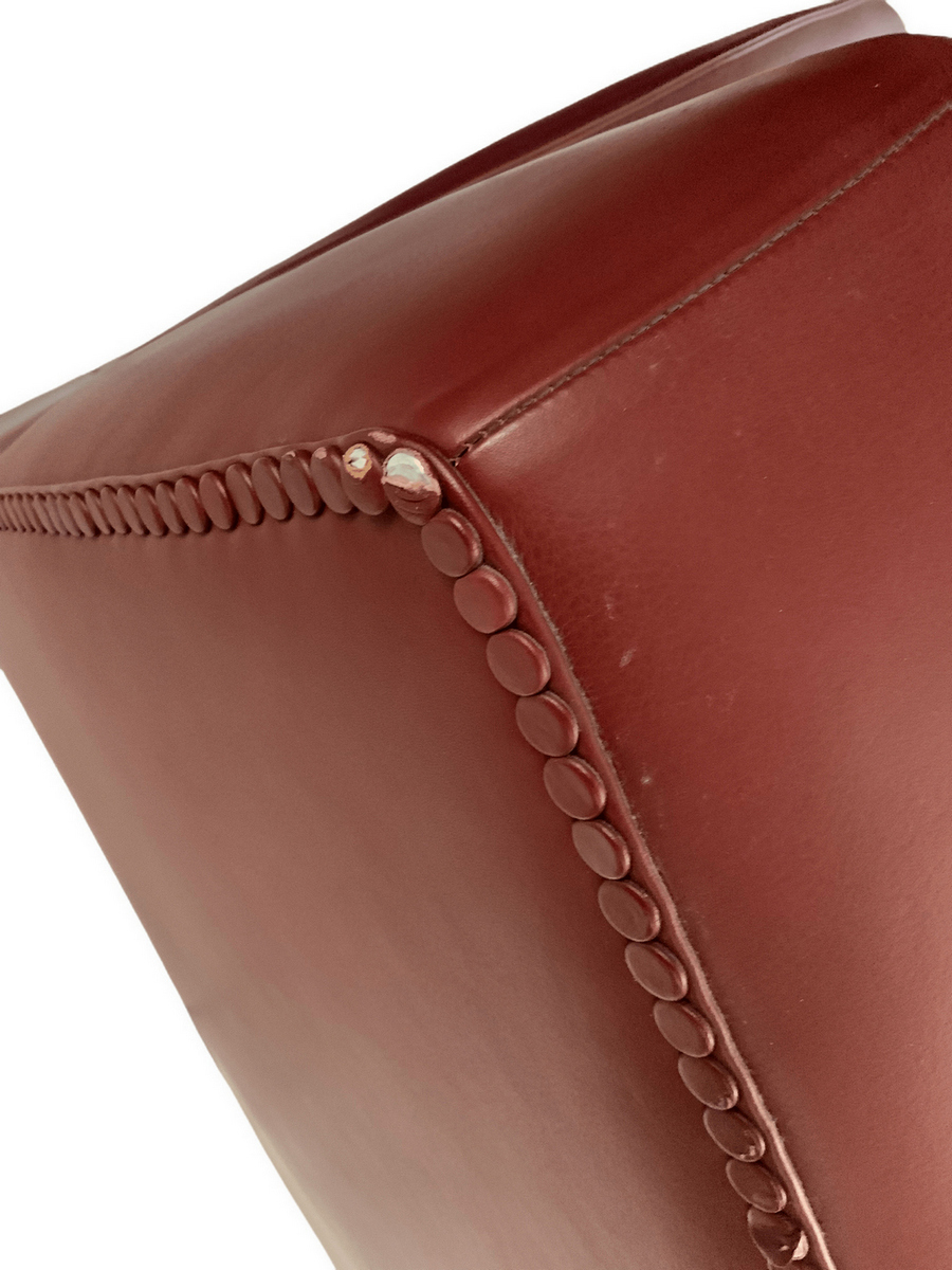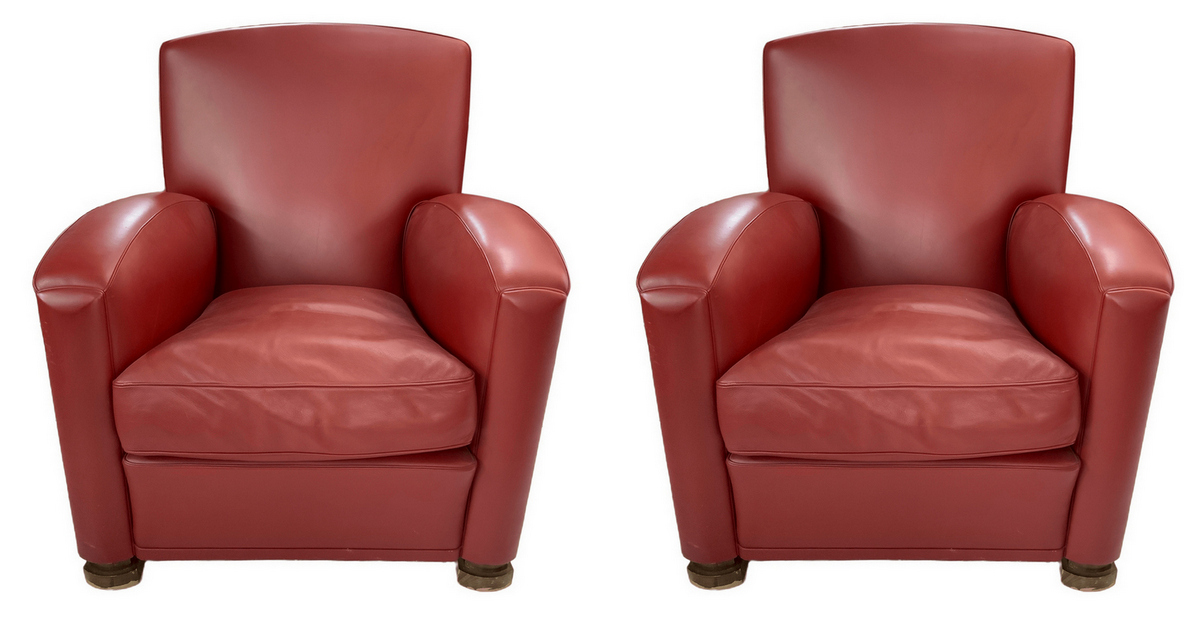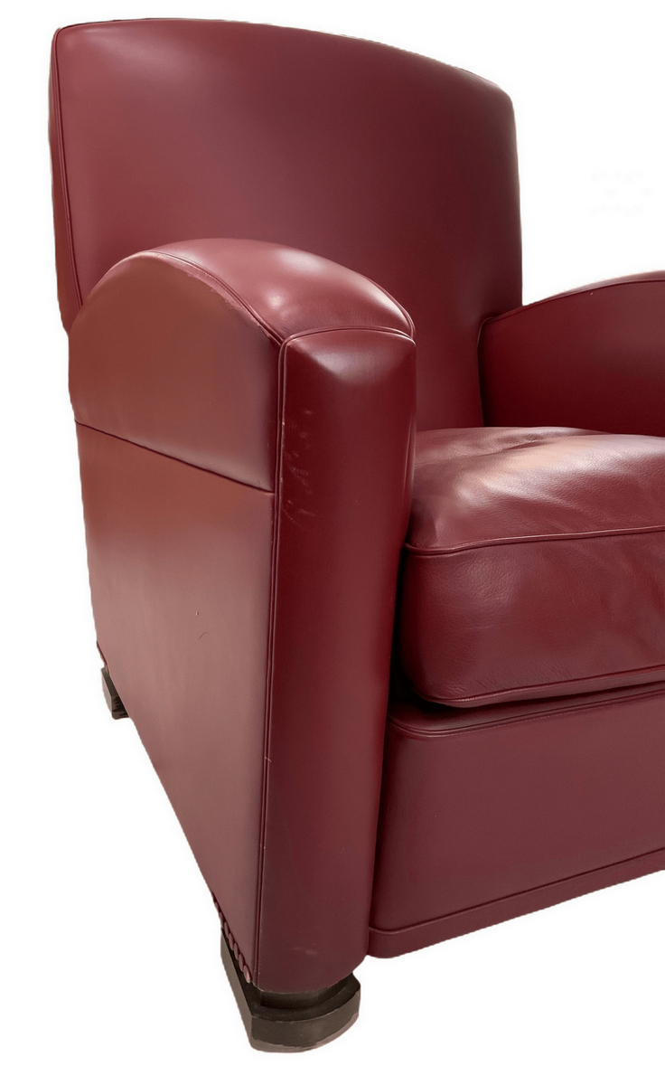 Coppia di poltrone Frau modello Tabarin, struttura in legno rivestimento in pelle primo fiore, nel toni amaranto. Condizioni ottime, con certificato di garanzia. H cm 87x80, profondità cm 83.