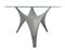 Produzione Molteni, Design Foster + Partenrs, mod. Arc, tavolo scultura, piano di forma rotonda in vetro trasparente, ba