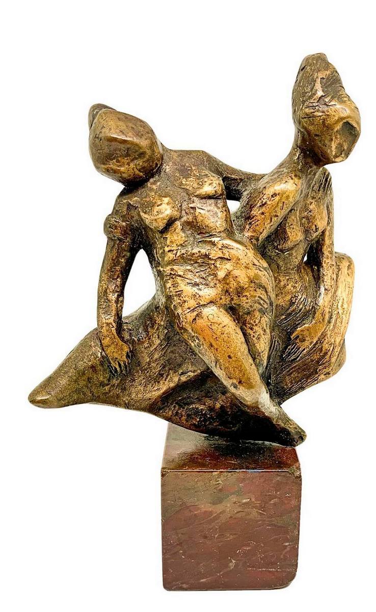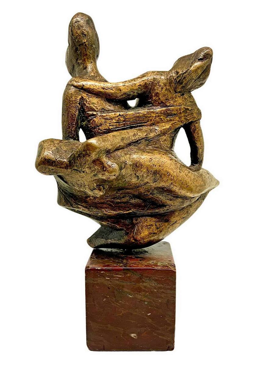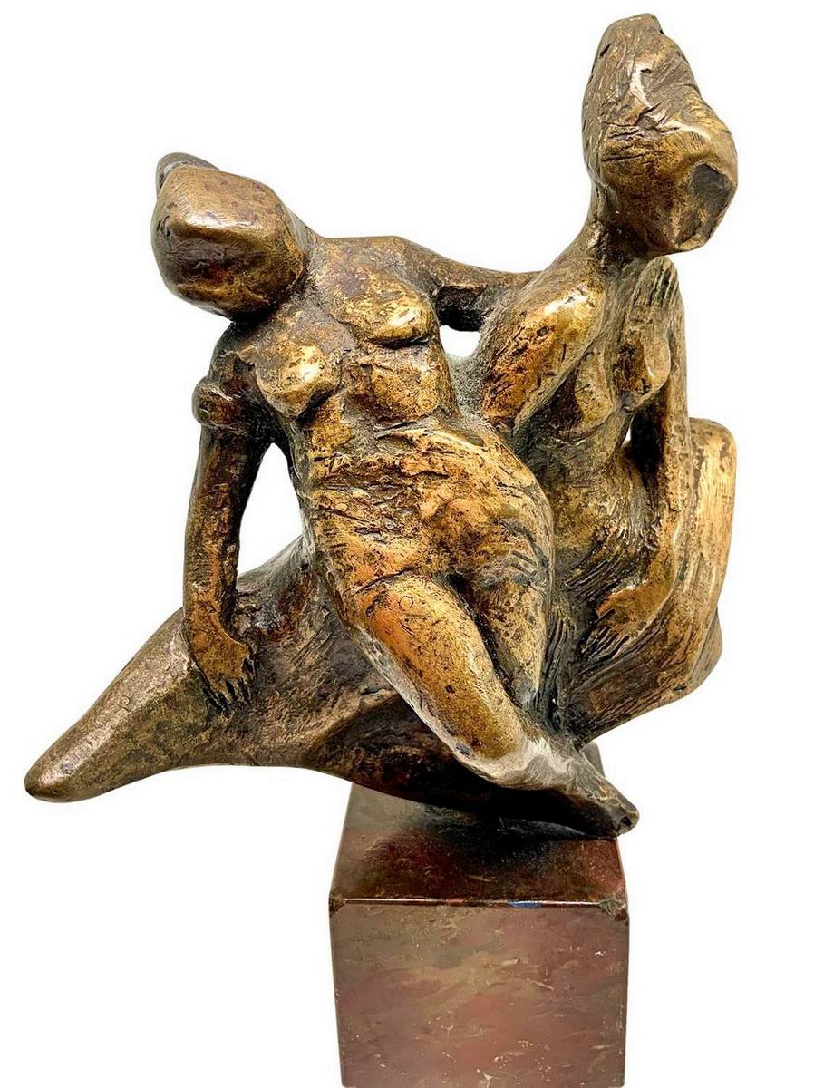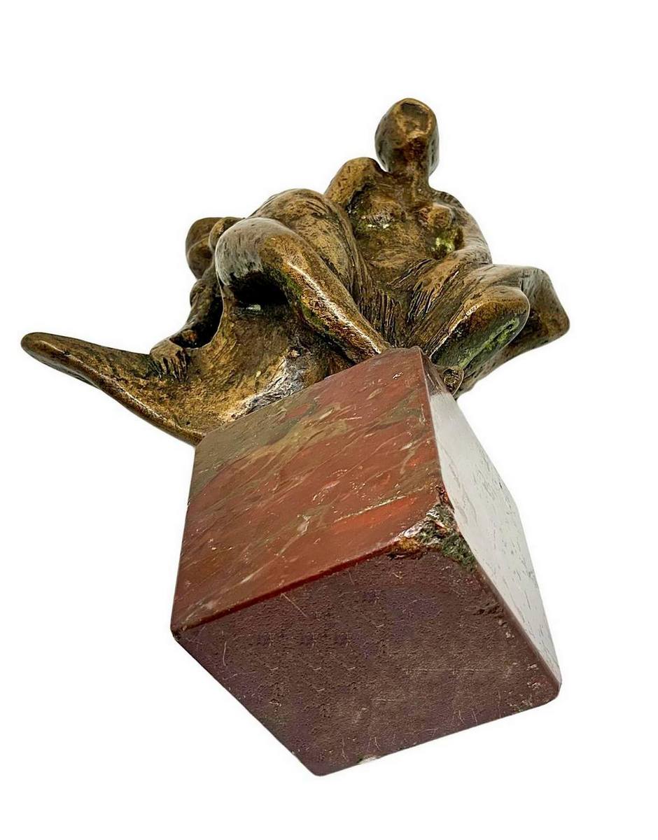 Bronzo raffigurante 3 donne sospese, con base in marmo marrone. H cm 23