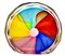 Scultura in vetro pesante di forma circolare con inclusioni di pasta vitrea policroma. Superficie riportante molature lu