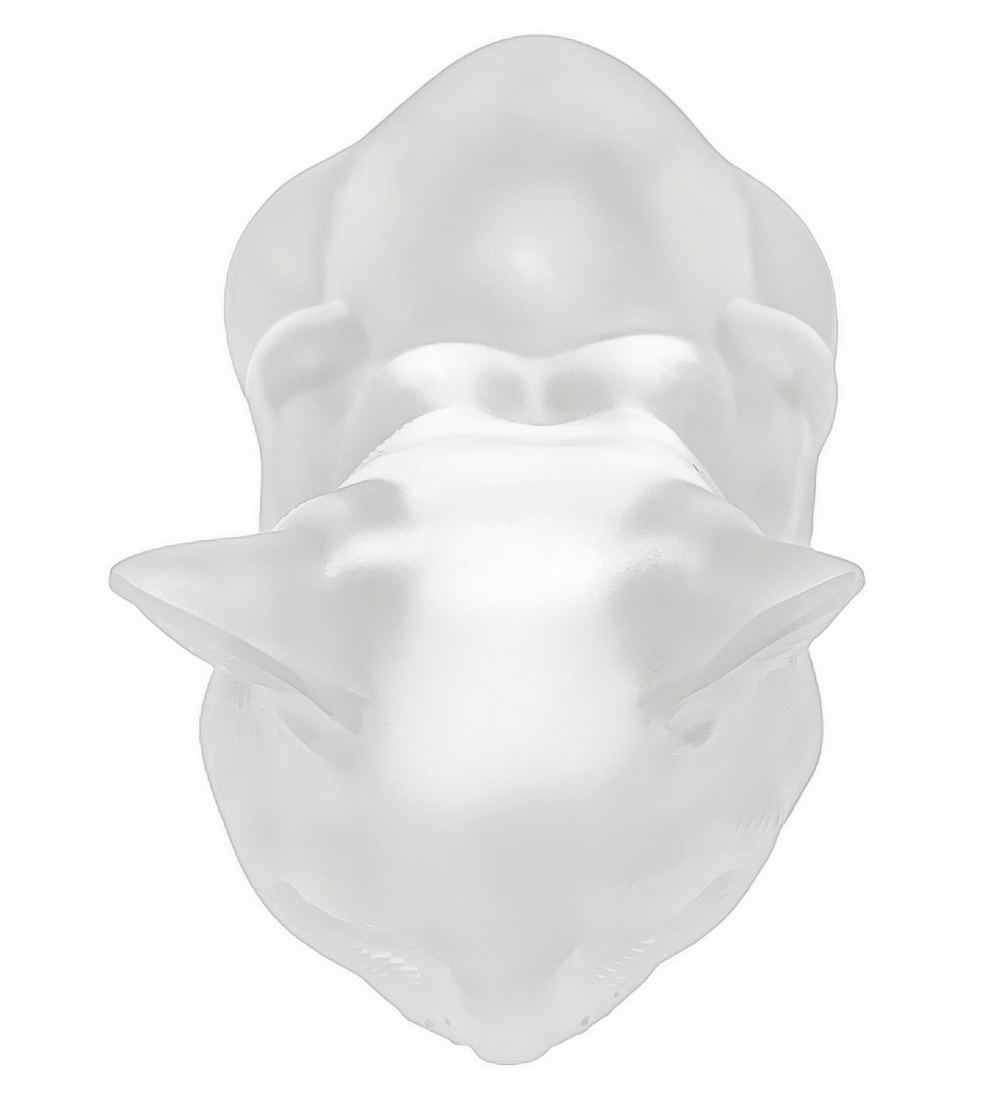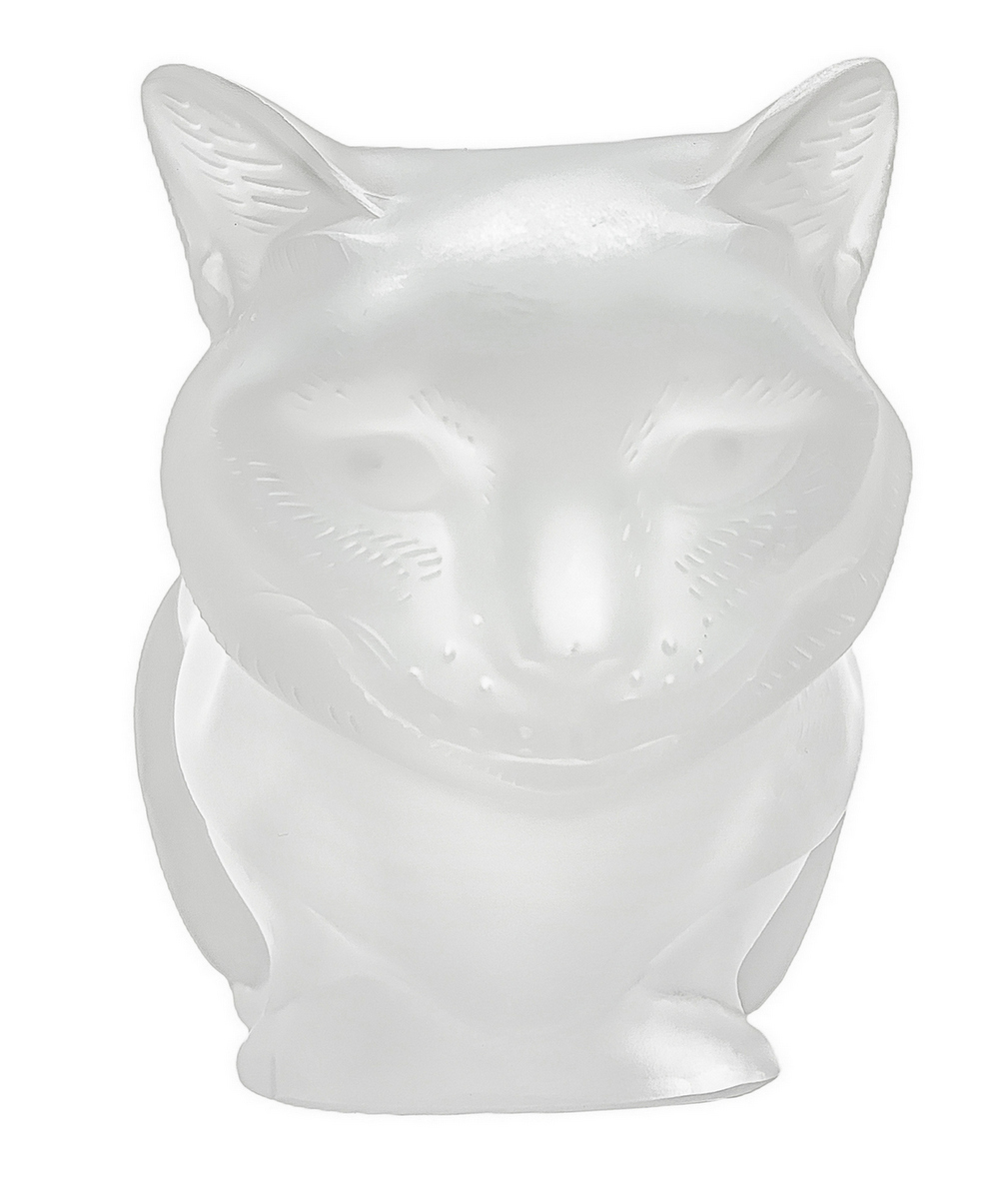 Lalique , scultura in vettro trasparente raffigurante gatto, con superficie acidata, anni '80. Firma incisa. H cm 11.x