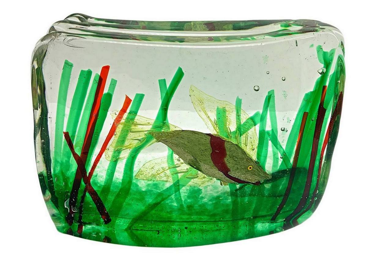 Scultura in vetro pesante raffigurante acquario, produzione Murano, produzione di Gino Cenedese, su disegno Riccardo Lic