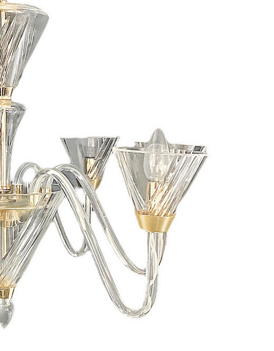 Lot 322 | Lampadario a sei luci in vetro molato, strutture e dettagli in ottone dorato.