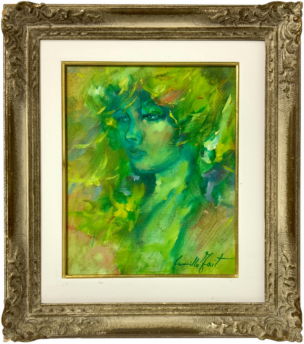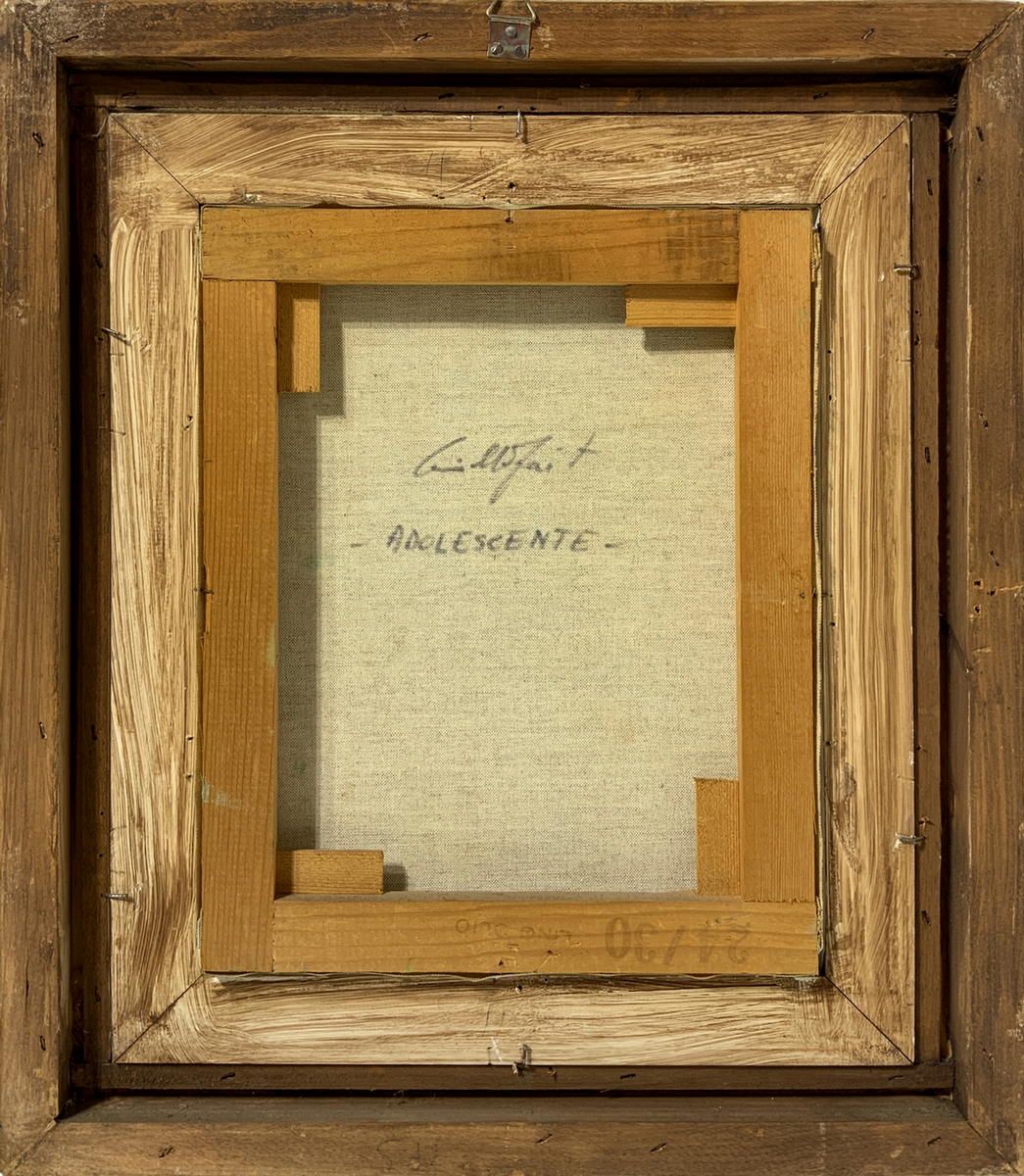Dipinto ad olio sui tela raffigurante “Adolescente”, Camillo Fait (Milano 1935 -) . Firmato in basso a destra e sul retro. Cm 30x24 in cornice 46x40