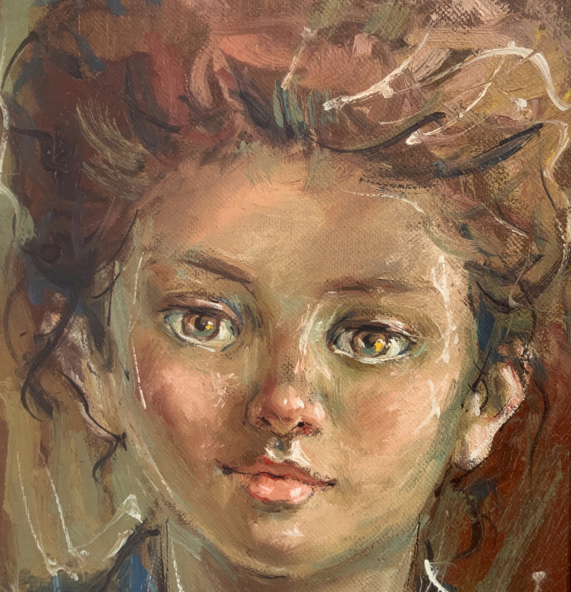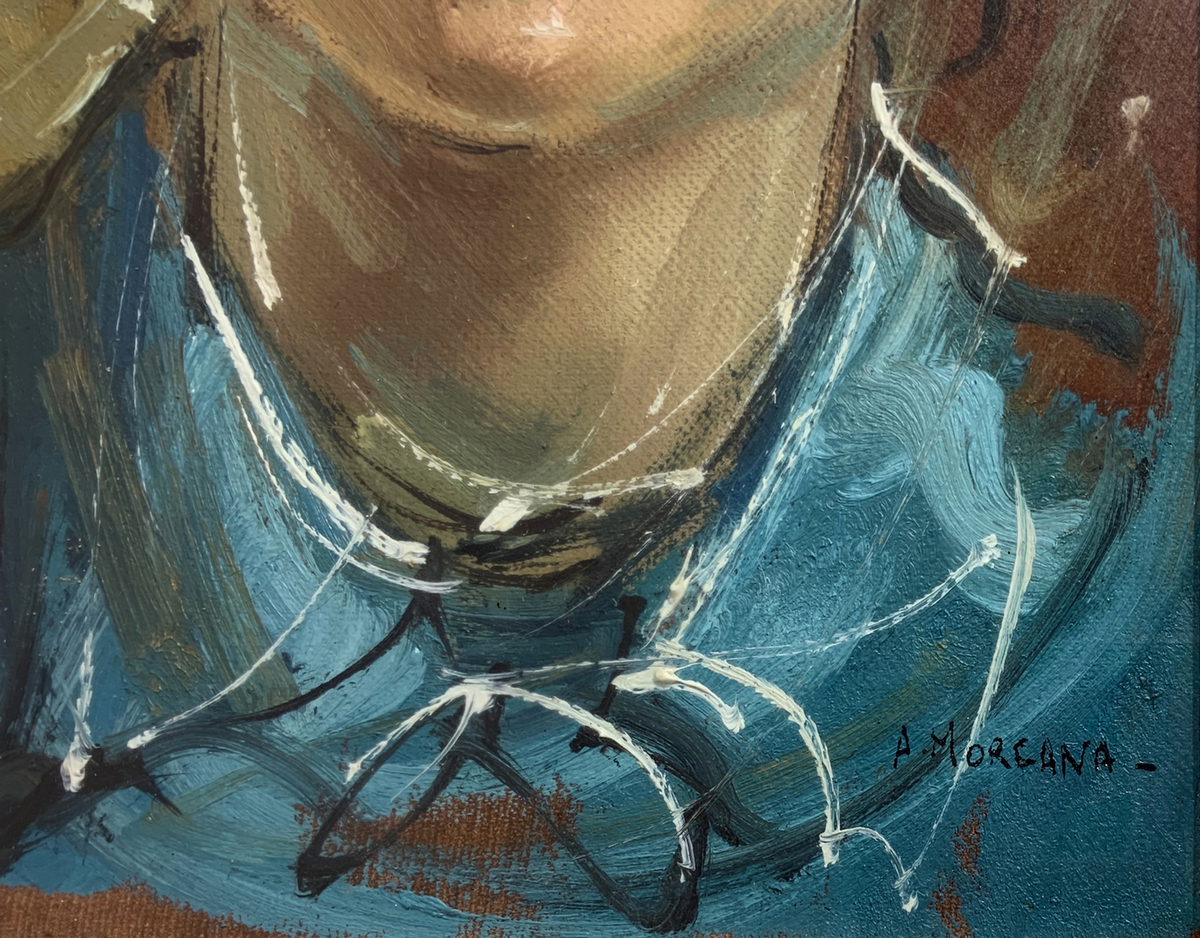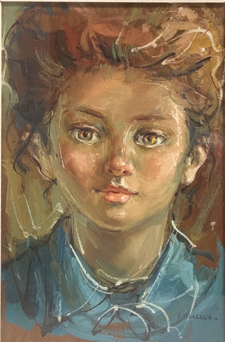 Dipinto ad olio su tela raffigurante volto di Giovane. Firmato in basso a destra Adalberto Morgana. Secolo XX Cm 30x20,
